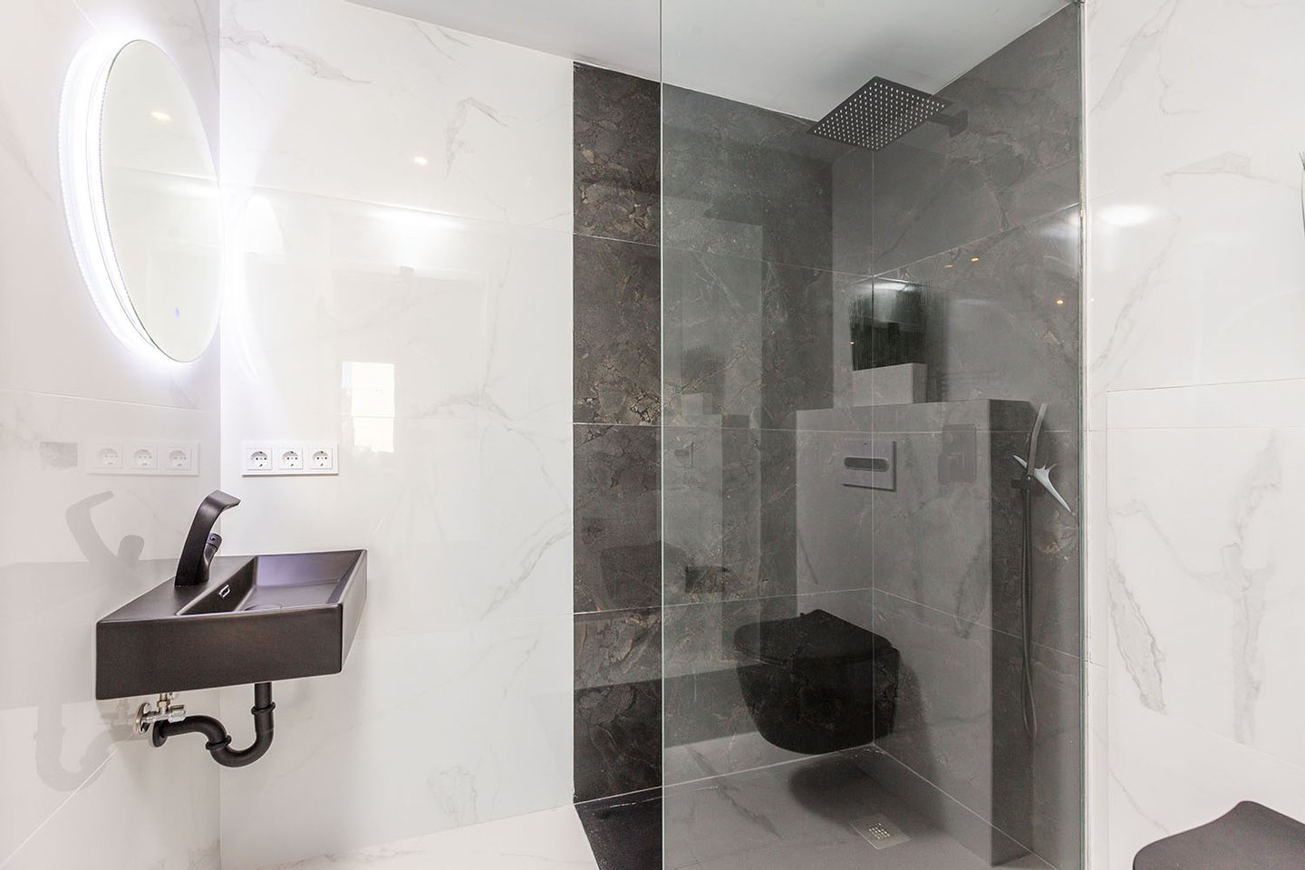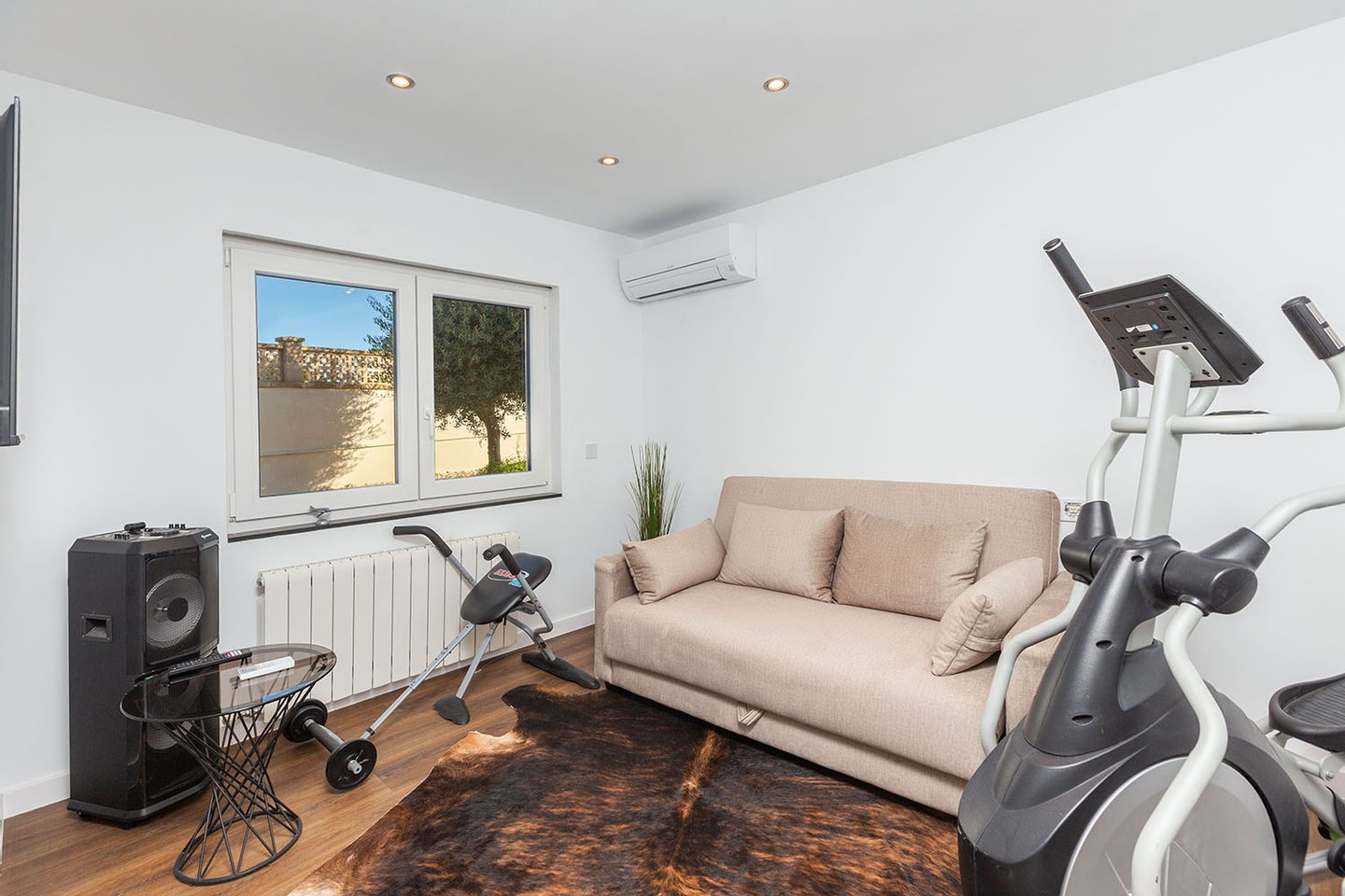 Zur technischen Ausstattung gehören Zentralheizung, Klimaanlage, Fußbodenheizung in den Bädern, elektrische Rollläden sowie per Mobilgerät steuerbare Markisen.