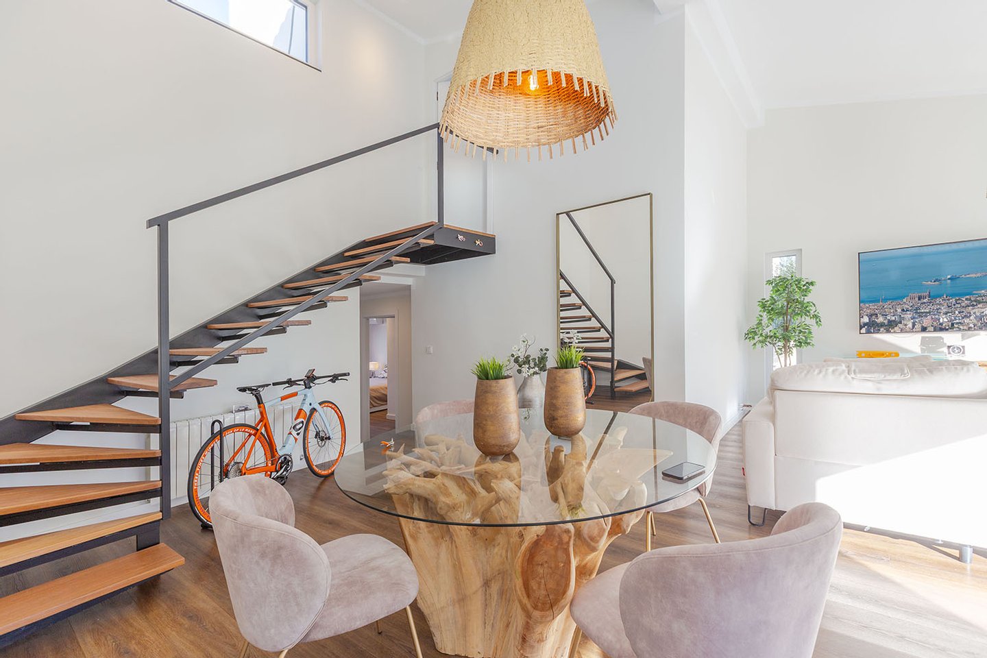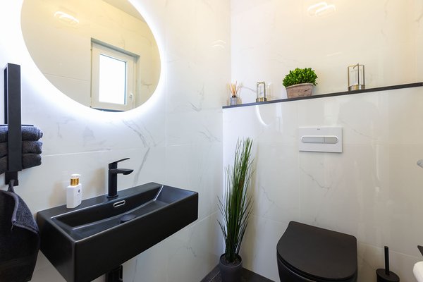 Im Inneren wurde besonderer Wert auf eine klare Gestaltung gelegt: Helle Farben und eine geradlinige Architektur verleihen den Räumen eine moderne, elegante Atmosphäre. Hochwertige Materialien und eine durchdachte Raumaufteilung unterstreichen den gepflegten, zeitgemäßen Gesamteindruck.