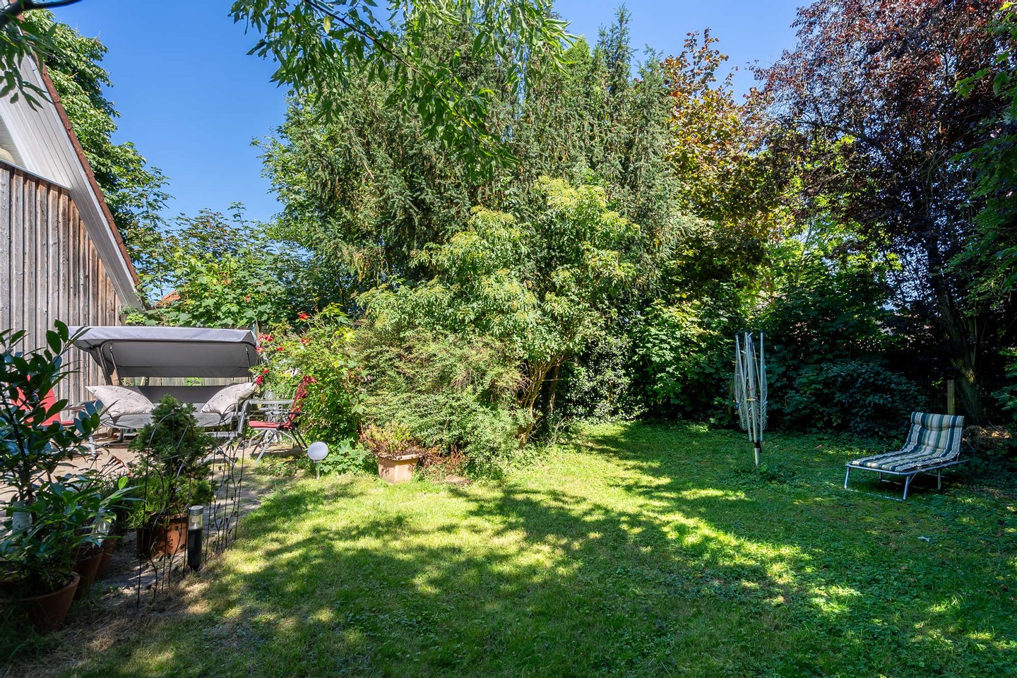 Das Haus steht auf einem großzügigen, liebevoll angelegten Naturgarten-Grundstück mit sonniger Terrasse – ein Ort zum Entspannen, Spielen oder Gärtnern. Die Lage in einer ruhigen Sackgasse bietet maximale Privatsphäre und ein sicheres Umfeld für Familien mit Kindern.