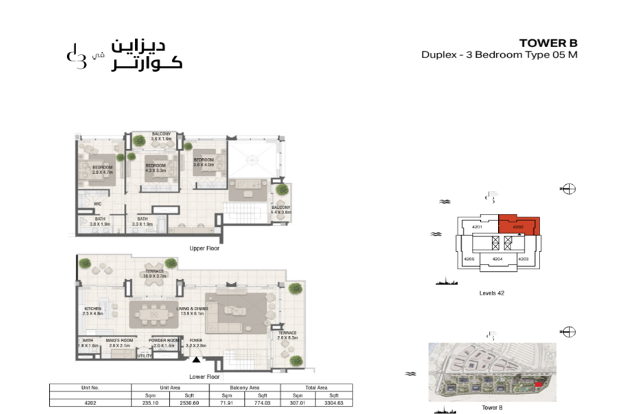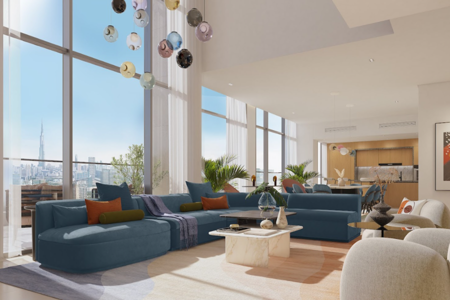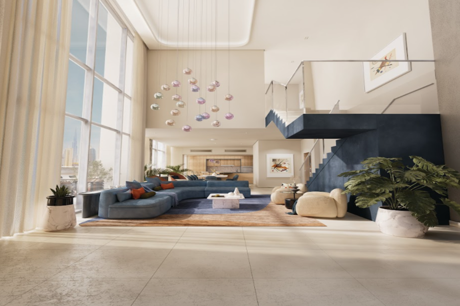 Willkommen in der luxuriösen 3-Schlafzimmer-Duplex-Wohnung im Herzen des Design-Viertels im Dubai Design District (d3). Wenn Sie diese atemberaubende Wohnung betreten, werden Sie von einem geräumigen Wohnbereich mit raumhohen Fenstern begrüßt, die