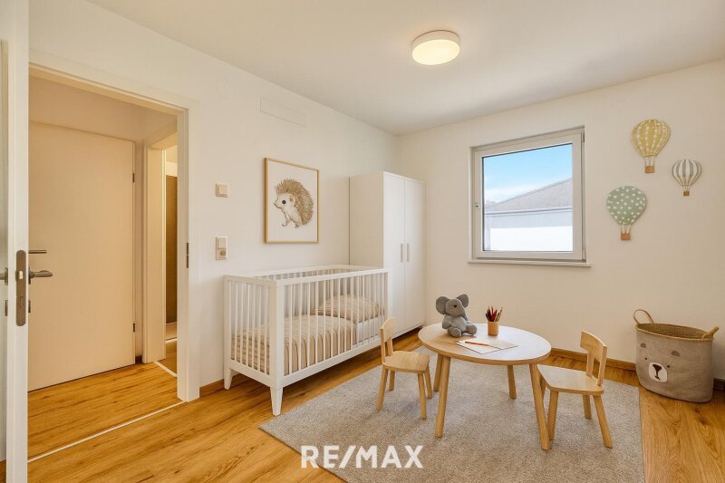 Dieses moderne Reihenhaus bietet mit rund 110 m² Wohnfläche ein durchdachtes Raumkonzept, das sowohl Familien als auch Paare anspricht. Vier Zimmer sorgen für ausreichend Platz, wobei eines der Schlafzimmer durch einen direkt angeschlossenen Schrankraum ergänzt wird – ein praktisches Detail, das Komfort und Ordnung in den Alltag bringt.