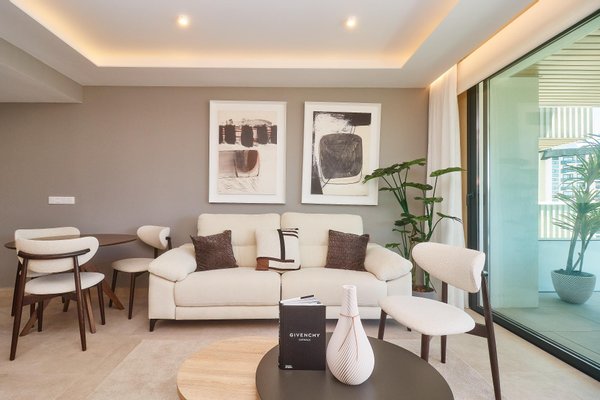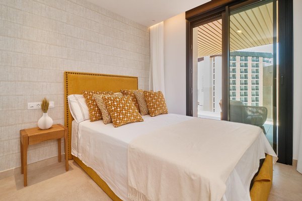 1, 2 or 3 bedrooms, with a modern and elegant design. The homes are characterised by their light, open spaces and spacious rooms, seeking continuity between the interior and the large terraces or private gardens outside.