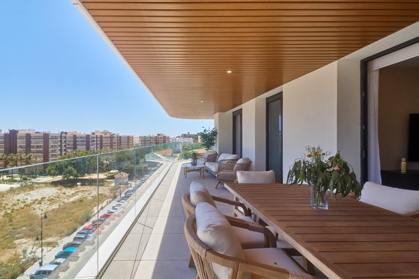 Pure lines, fully equipped kitchens with Neff appliances and Silestone countertops, built-in and fitted wardrobes, complete bathrooms with Gunni & Trentino floors and tiling. In addition, large terraces and spaces designed for relaxation, which define a relaxed way of living and a Mediterranean lifestyle.