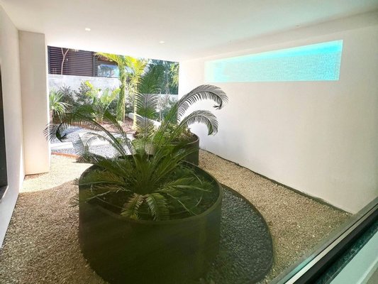 Auf dieser Ebene befinden sich eine Suite und eine Master-Suite mit großen Fenstern, beide mit Zugang zu einer großen privaten Terrasse nach Südwesten. Von hier aus genießen Sie einen ruhigen Blick auf den Garten, den Pool und die grüne Umgebung mit hervorragender Sonneneinstrahlung den ganzen Tag über.