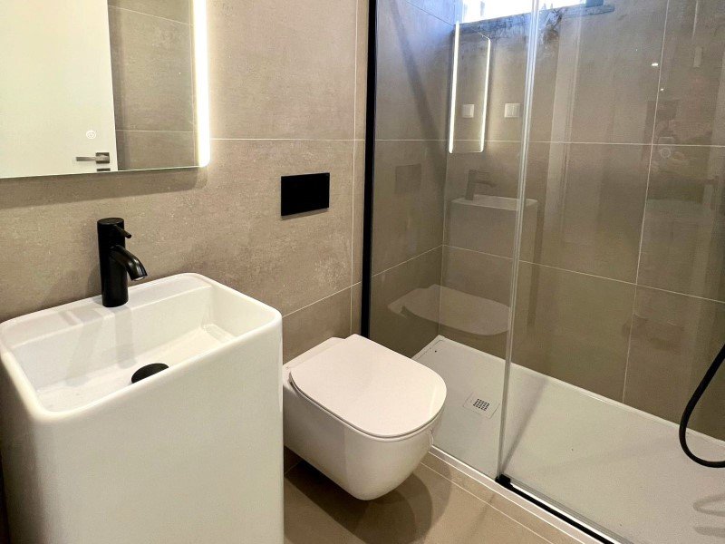 Auf dieser Ebene befinden sich eine Suite und eine Master-Suite mit großen Fenstern, beide mit Zugang zu einer großen privaten Terrasse nach Südwesten. Von hier aus genießen Sie einen ruhigen Blick auf den Garten, den Pool und die grüne Umgebung mit hervorragender Sonneneinstrahlung den ganzen Tag über.