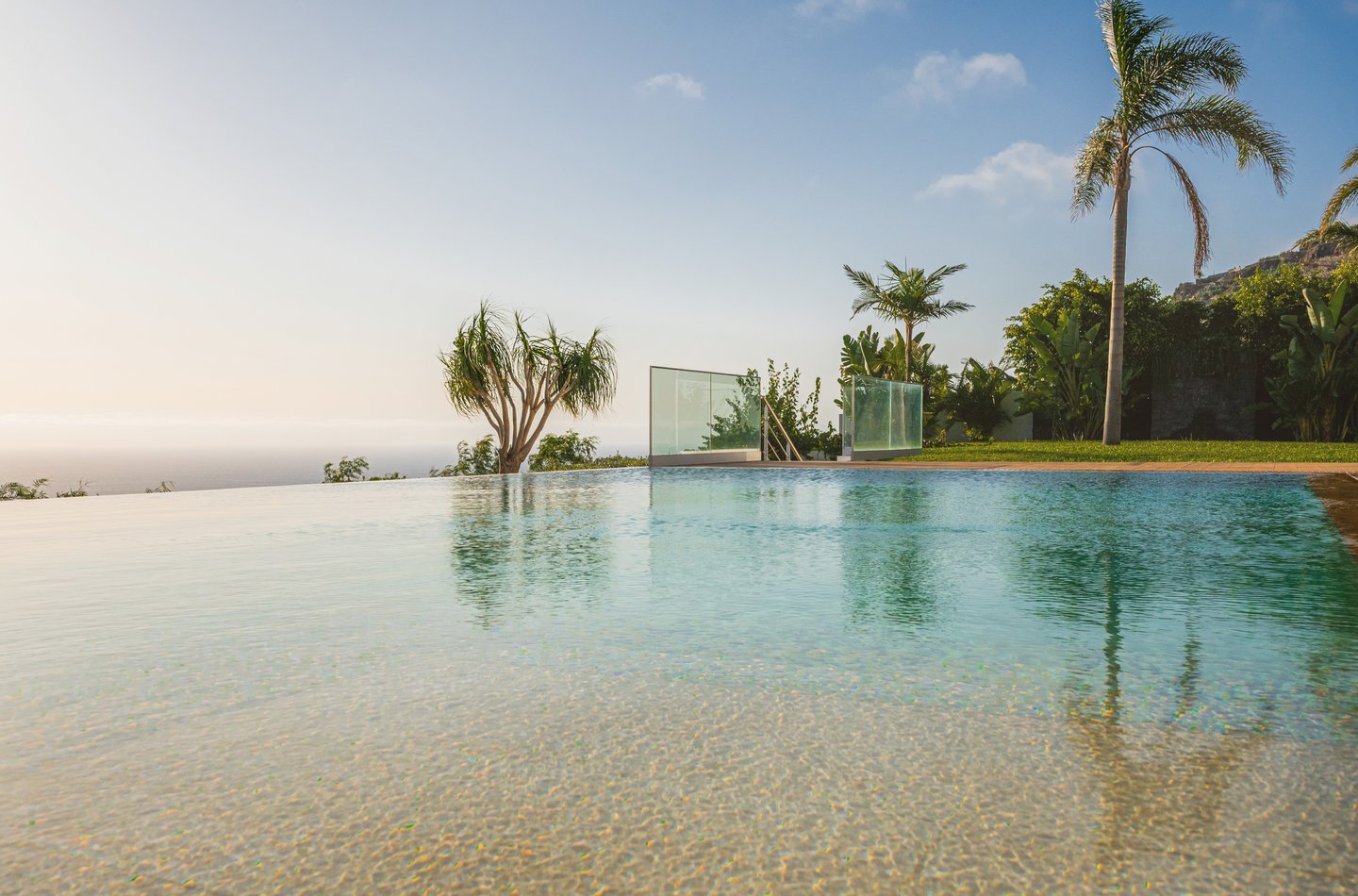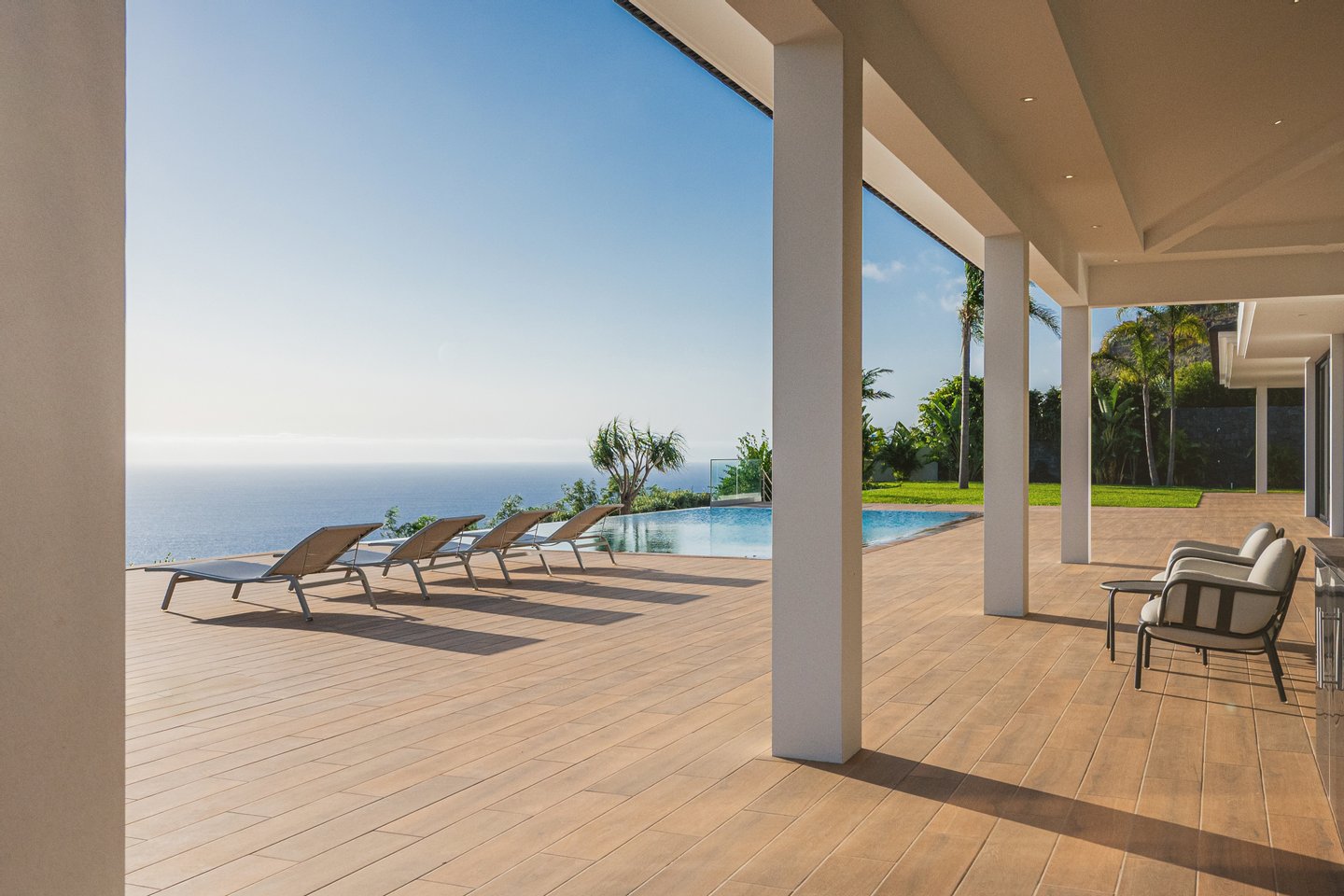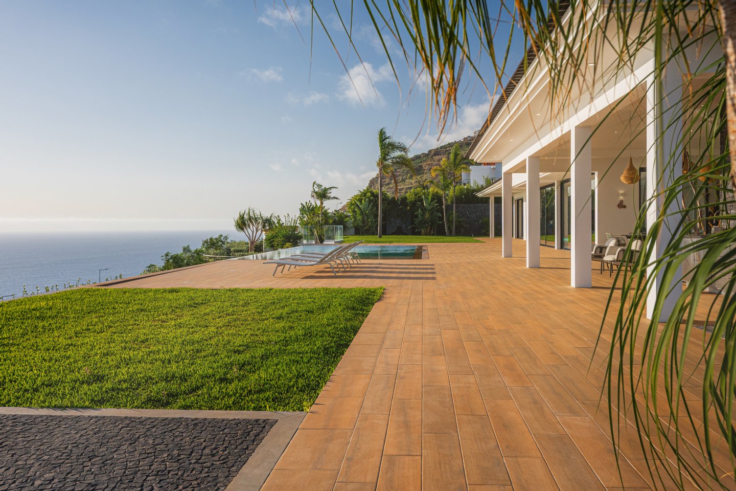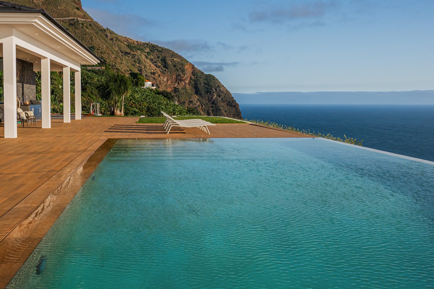 Im Außenbereich vermittelt die Villa ein echtes Resort-Gefühl. Der große Infinity-Pool mit Spiegelkante bildet das Herzstück des Gartens und wird von einer Sonnenterrasse, einem eleganten Grillbereich und einer überdachten Lounge ergänzt, die als echtes Outdoor-Wohnzimmer gestaltet ist. Jeder Bereich ist darauf ausgelegt, Licht, Komfort und das ganzjährig milde Klima Madeiras in vollen Zügen zu genießen.