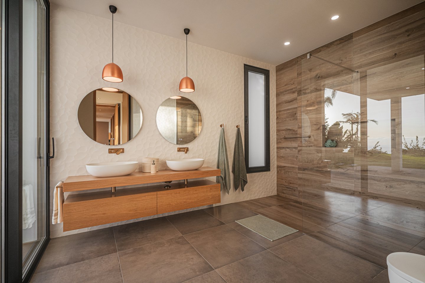 Die Villa ist mit modernster Technologie ausgestattet, darunter umkehrbare Klimaanlage, hochwertige Siemens-Einbaugeräte, Zentralstaubsauger, Solar- und Photovoltaikanlagen, VMC-Lüftung, Außenüberwachungskameras, Alarmsystem und Videogegensprechanlage. Ein fortschrittliches Hausautomationssystem steuert präzise die Beleuchtung, Rollläden, Beschattungen, Bewässerung sowie sämtliche Poolfunktionen. Sämtliche automatisierte Systeme - einschließlich der Pool-Wärmepumpe und der Energieüberwachung - können bequem über ein Smartphone gesteuert werden.