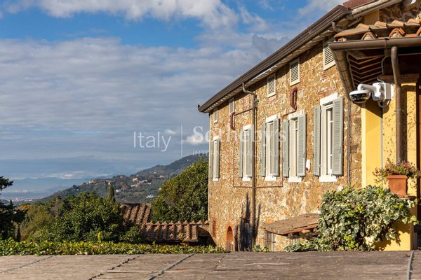 Auf den malerischen toskanischen Hügeln mit Blick auf das Meer der Versilia erhebt sich eine herrschaftliche Villa aus dem 16. Jahrhundert, eingebettet in einen