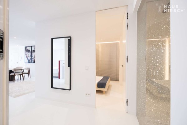 Die Wohnung verfügt über 3 geräumige Schlafzimmer, jedes mit einem eigenen Bad en-suite. Alles wurde sorgfältig nach hohen Standards renoviert, mit modernen Oberflächen und zeitgenössischen Designelementen.