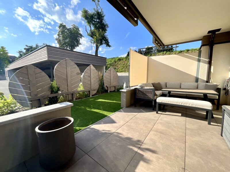 Die nach Westen ausgerichtete Terrasse – rund 20 m² pures Freiluftglück – und der liebevoll gestaltete Eigengarten schenken Ihnen jene Momente, die man niemals vergisst: Sonnenuntergänge bei einem Glas Wein, Gespräche mit Freunden, schöne Momente im Abendlicht, der Blick ins Grüne, der die Seele zur Ruhe bringt.