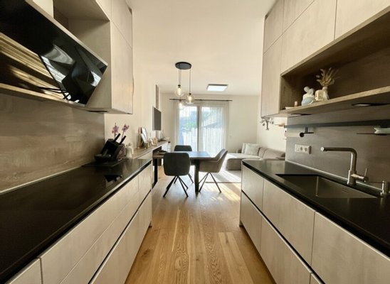 Schon beim Eintreten empfängt Sie eine Atmosphäre, die kaum in Worte zu fassen ist. Auf rund 50 m² eröffnet sich eine perfekt abgestimmte Raumkomposition: ein lichtdurchfluteter Wohn- und Essbereich mit hochwertiger, stilvoll integrierter Einbauküche und angrenzender Speisekammer, ein gemütliches Schlafzimmer, ein modernes Bad mit großer Dusche und Fenster sowie ein separates WC. Ein großzügiger Garderobenbereich vervollständigt das einzigartige Wohngefühl auf den ersten Metern.