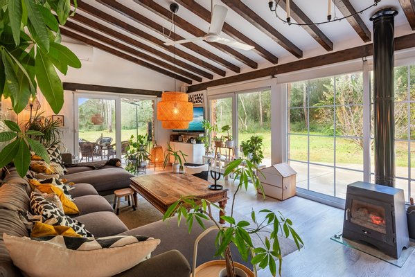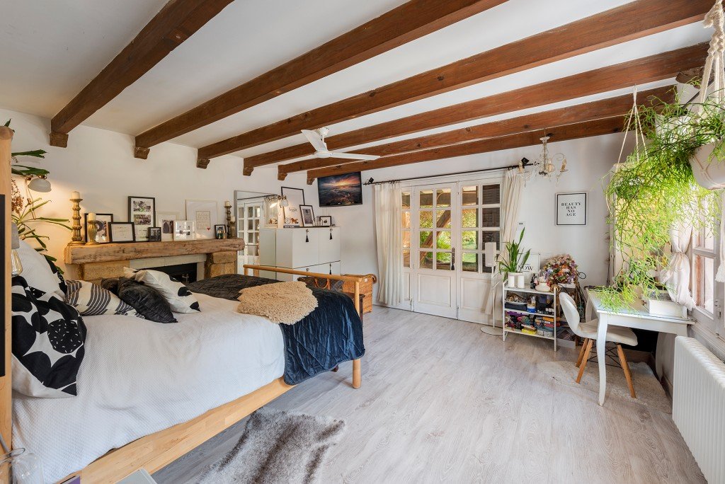 Das Haupthaus verteilt sich über zwei Etagen und umfasst ca. 320 Quadratmeter. Es verfügt über freiliegende Holzbalken, geräumige Innenräume und ein Design, das durch die Verwendung edler, lichtdurchlässige Materialien das Erbe der Region widerspiegelt.
