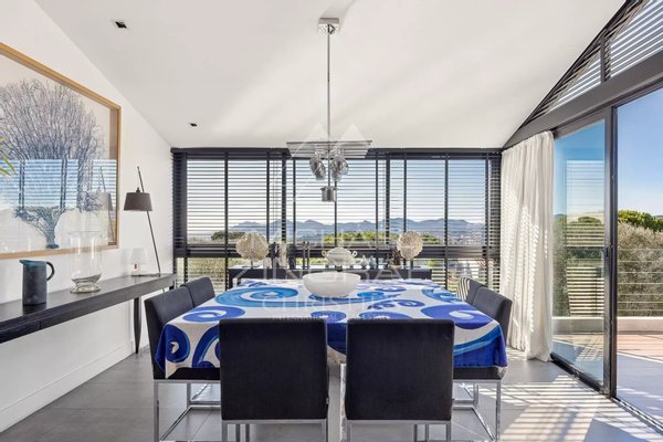 Gelegen auf den begehrten Höhen von Le Cannet Collines, erstreckt sich diese prächtige Familienvilla von etwa 451 m² auf einem 2.077 m² großen Grundstück und bietet Privatsphäre und Sicherheit in einer kleinen, geschlossenen Wohnanlage mit nur zwei Häusern.