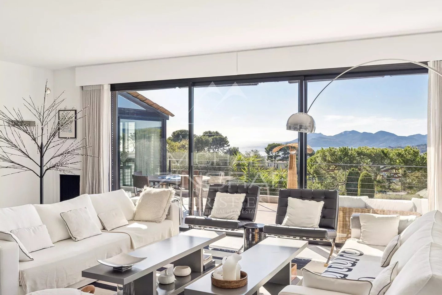 Dank ihrer Südwest-Ausrichtung ist sie optimal sonnendurchflutet und bietet einen herrlichen Ausblick auf das Meer und das Esterel-Gebirge – ein Panorama, das bei jedem Blick begeistert. Das Herzstück des Hauses ist die großzügige Familienküche mit beeindruckenden Raumdimensionen, gestaltet, um Familie und Freunde in einem einladenden und zugleich modernen Ambiente zusammenzubringen.