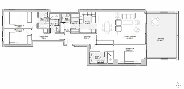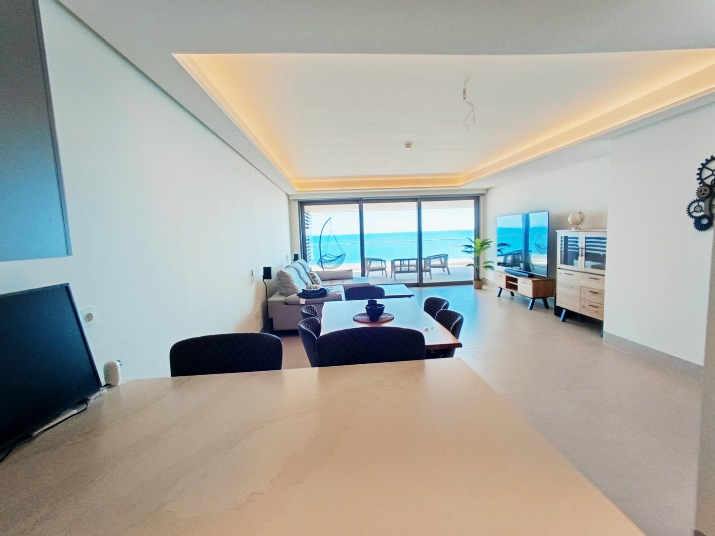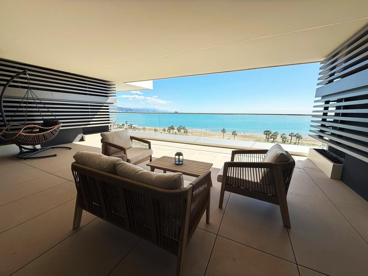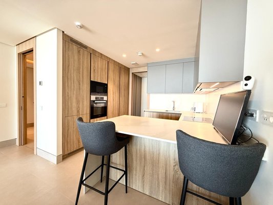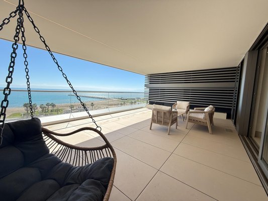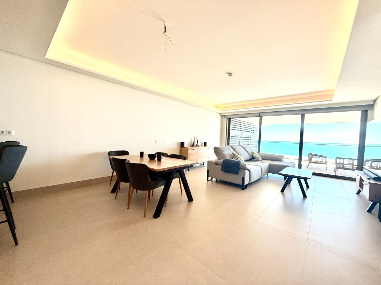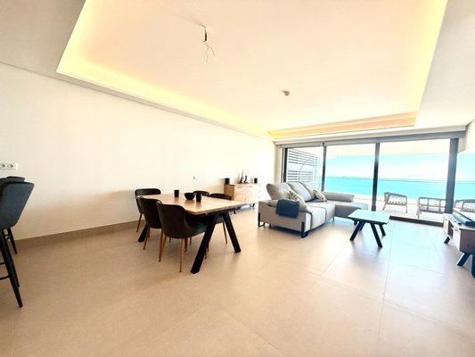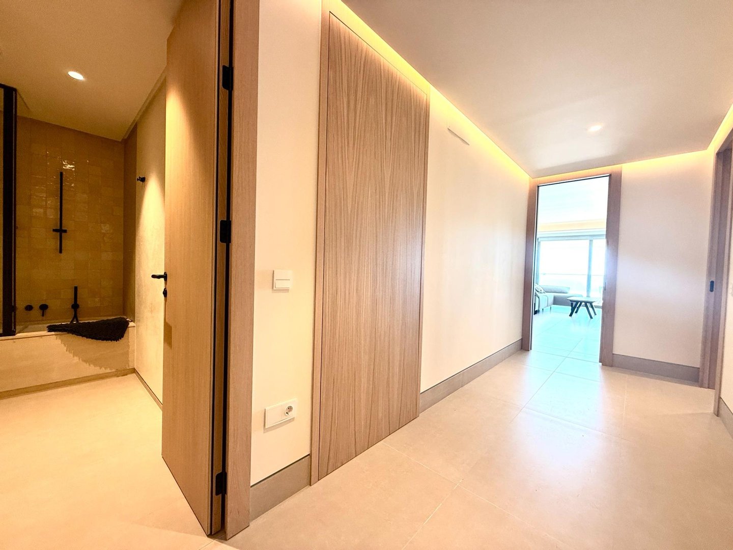 The property has 3 bedrooms with dressing room, 3 ensuite bathrooms, 1 toilet (all Villeroy & Bosh design), porcelain stoneware floors, 40 square metre living room, fully equipped kitchen, laundry room and spectacular 40 metre terrace with incredible panoramic views of the Mediterranean. All this accompanied by high quality finishes, large and bright windows that allow natural light to enter. State-of-the-art equipment, including home automation systems, centralised aerothermics, underfloor heating. Maximum thermal and acoustic comfort in this luxurious home, with 2 large parking spaces and storage room. All located in a unique residential complex.