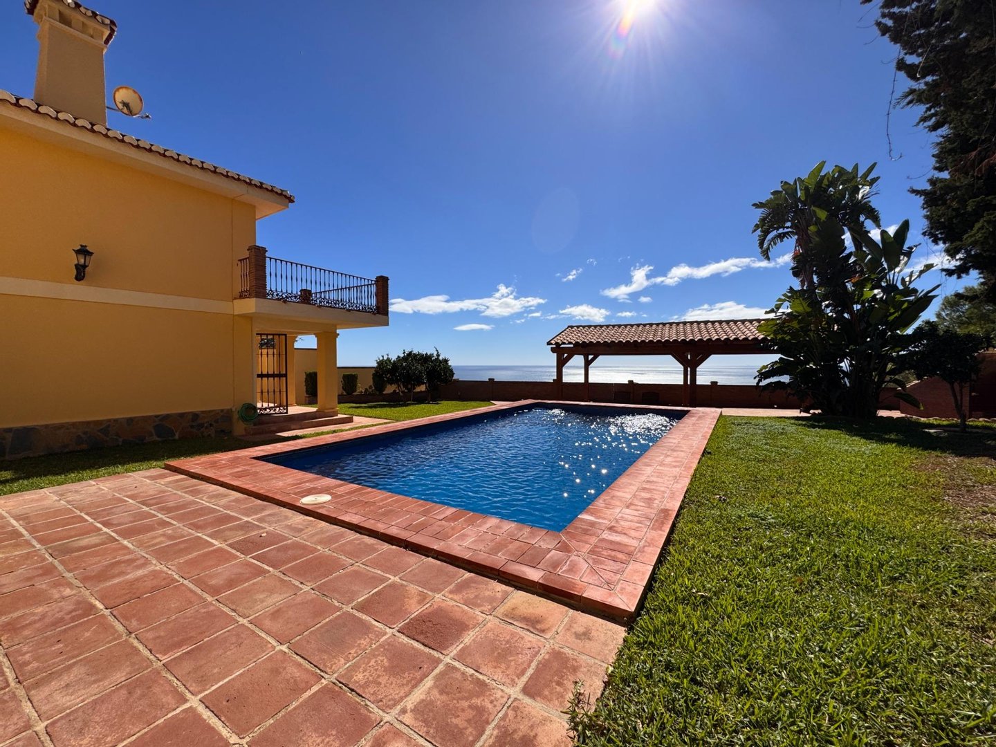 All surrounded by large windows to the outside of the property. We could not miss a large swimming pool, facing south allowing us to see the sea from the water.