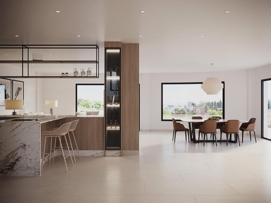It consists of 3 bedrooms with en-suite bathrooms on the first floor with sea views and access to the terrace, an attic bedroom on the second floor with en-suite bathroom, on the ground floor a living room or office with guest bathroom and a spacious living-dining room with kitchen opening onto the large terrace.