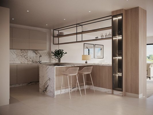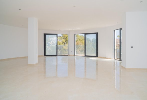 Newly completed turnkey construction with an excellent location and elevated south-facing position with stunning sea views across three floors.