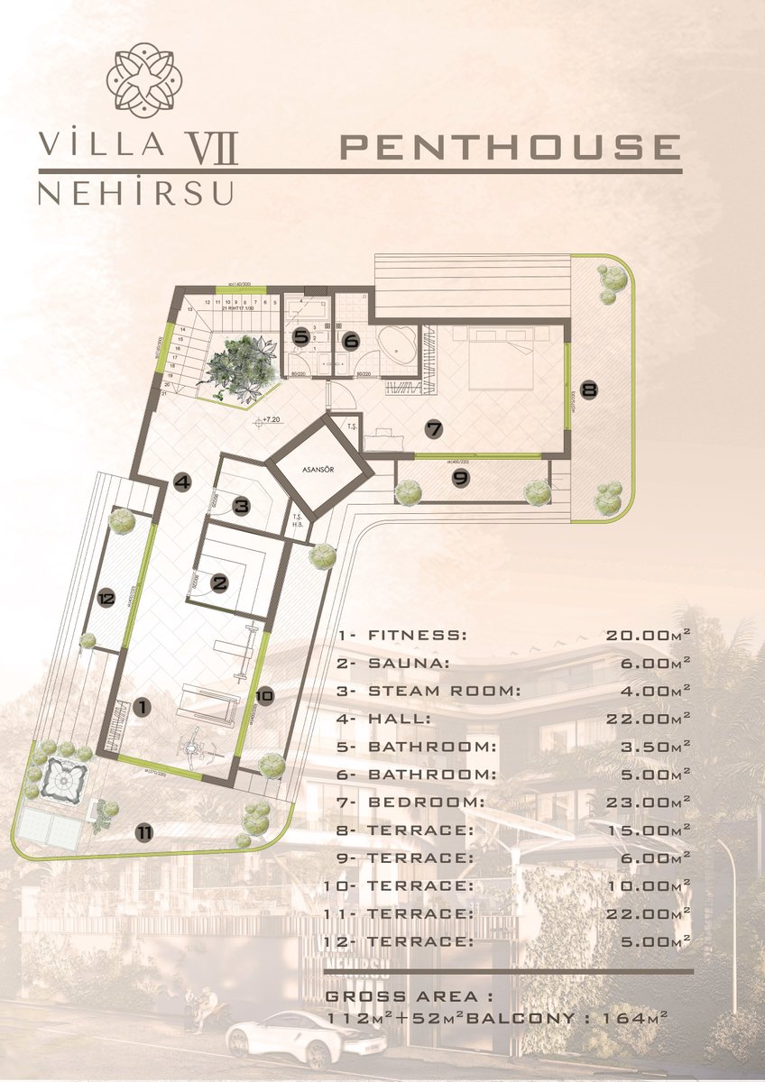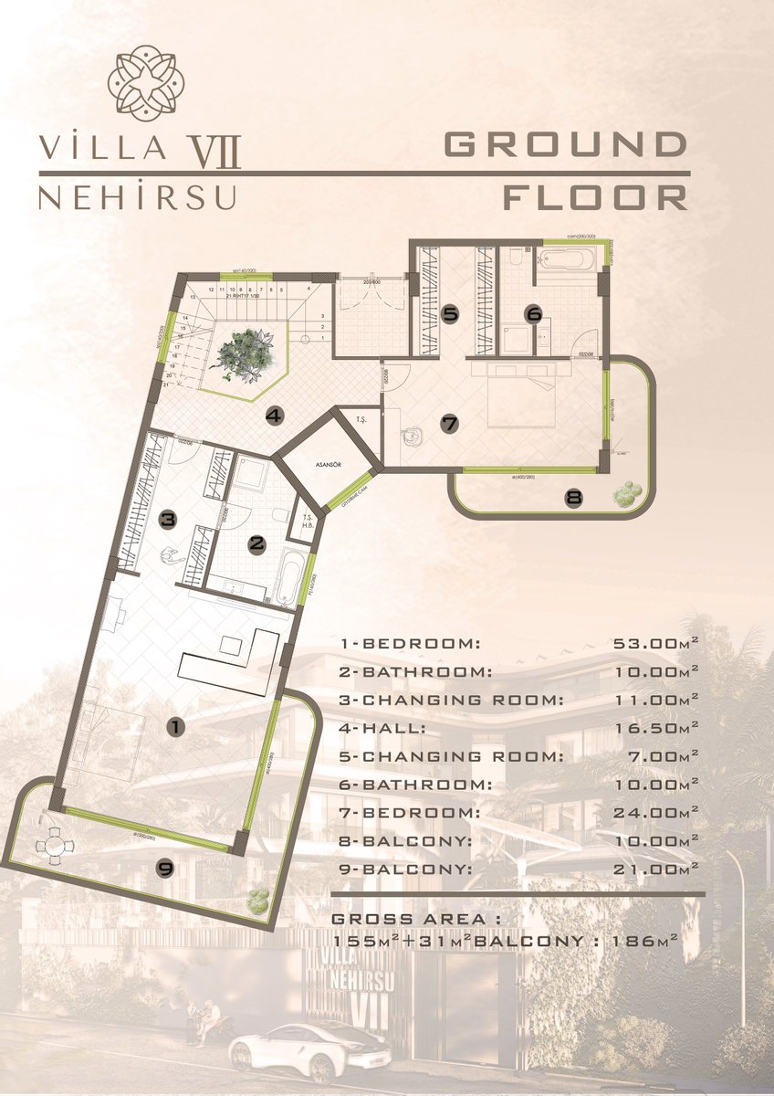 Höhepunkte der Villa Nehirsu 7 Die Villa befindet sich auf einem 718 m² großen Privatgrundstück und erstreckt sich über vier Stockwerke mit einem intelligenten und funktionalen Grundriss. Es verfügt über 7 Schlafzimmer, 2 geräumige Wohnzimmer, mehrere Lagerräume sowie umfangreiche Wellness- und Freizeiteinrichtungen. Die Immobilie ist außerdem für die türkische Staatsbürgerschaft berechtigt, was ausländischen Investoren erhebliche rechtliche Vorteile bietet. Wichtige technische Merkmale sind: Volles Smart-Home-System, Fußbodenheizung auf allen Etagen, elektrische Fensterläden in jedem Raum, hochwertige Aluminiumfenster mit Comfor-Isolierglas, Aufzug und Generator, professionelles Dach und Feuchtigkeitsdämmung, Moderne Lüftungssysteme, die eine ausgezeichnete Raumluftqualität gewährleisten.