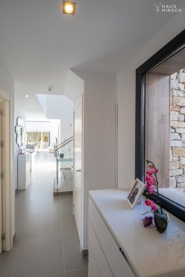 Herzlich willkommen in dieser einzigartigen modernen Villa, die mit hochwertigen Möbeln und vielen Details sowie Upgrades ausgestattet ist. Betreten Sie das sonnendurchflutete Haus, welches durch seine hohen Fenster und Decken sich auszeichnet. Es