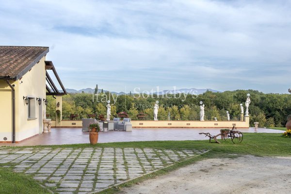 Die kürzlich renovierte Immobilie verbindet den Charme der toskanischen Tradition mit modernen Räumen, die mit allen Annehmlichkeiten ausgestattet sind. Das Anwesen ist von einem weitläufigen privaten Panoramagarten umgeben, mit einem herrlichen Pool mit Wasserfall, einem malerischen Teich mit Brücke und einem großen eigenen Wald.