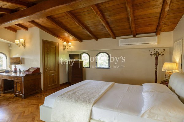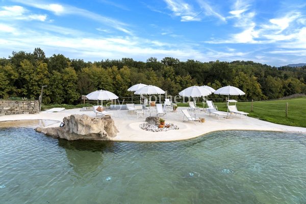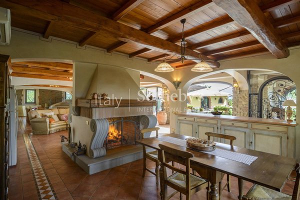 Die kürzlich renovierte Immobilie verbindet den Charme der toskanischen Tradition mit modernen Räumen, die mit allen Annehmlichkeiten ausgestattet sind. Das Anwesen ist von einem weitläufigen privaten Panoramagarten umgeben, mit einem herrlichen Pool mit Wasserfall, einem malerischen Teich mit Brücke und einem großen eigenen Wald.