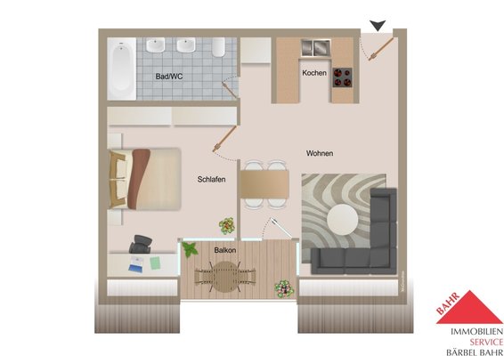 Diese 2-Zimmer-Dachgeschosswohnung hat eine Wohnfläche von ca. 41m² und ist bereits vollständig möbliert – Sie müssen lediglich Ihre Koffer mitbringen!