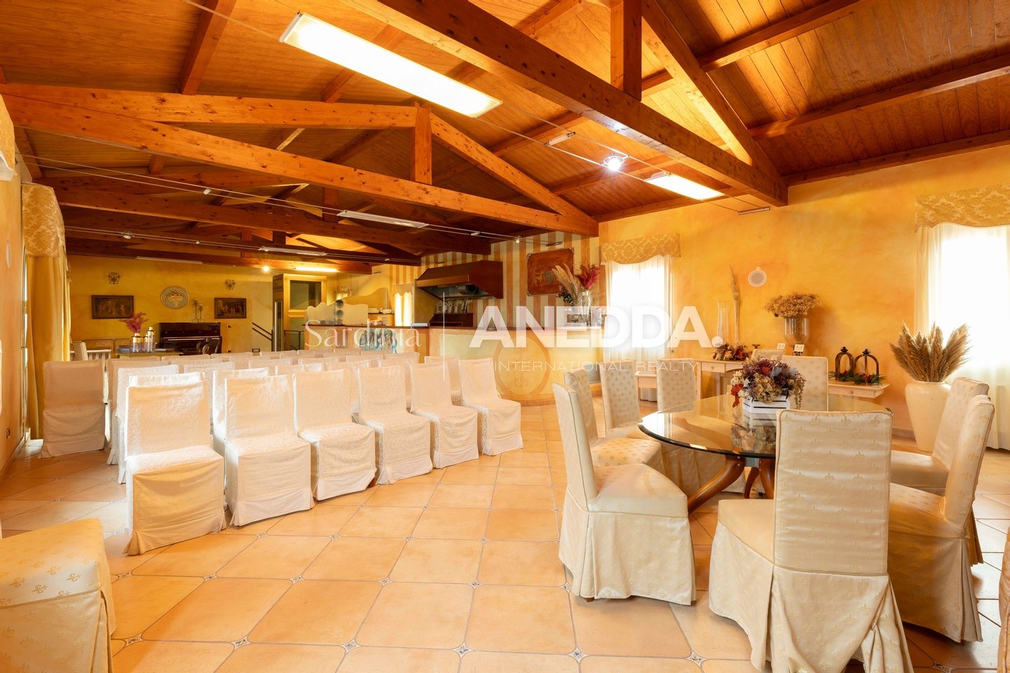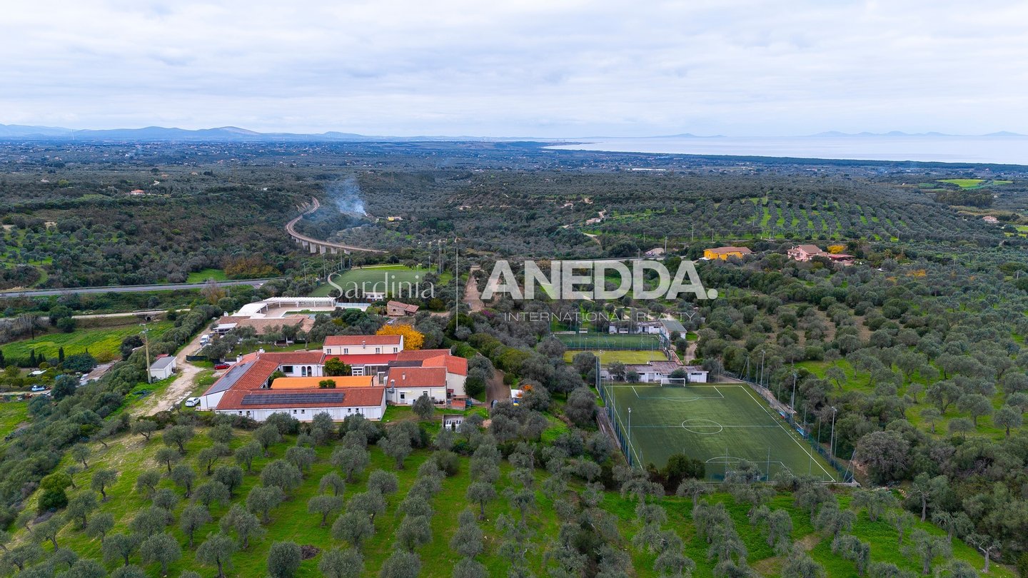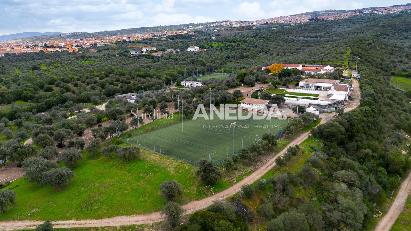 4 KM FROM THE SEA - High-level residence – Events – Hospitality – Sport & Wellness – Investment In the heart of northern Sardinia, surrounded by a fascinating centuries-old olive grove with scenery open to the Gulf of Asinara, stands a unique property in terms of size, characteristics and potential: an exclusive estate that extends over a private park of 50,000 m² (5 hectares) and includes about 2,800 m² of covered areas, designed to accommodate events, accommodation activities, sports, wellness and catering. The generous spaces, quality infrastructures and total privacy make this solution ideal both for investors looking for a high-level multifunctional project, and for a demanding clientele who want to transform it into a prestigious private residence, equipped with comforts and services that are difficult to find in the traditional market. A PROPERTY THAT REDEFINES THE STANDARD OF PRIVATE AND PROFESSIONAL LIVING 1. Main building – Large rooms and transformable spaces The main building, now used for receptions and events, offers important volumes and modular rooms that can be reinterpreted as: • large living area with high ceilings • lounge spaces and relaxation areas • professional kitchen convertible into a high-end home kitchen • guest rooms, private studios, cinema rooms, music room The large covered verandas and the internal courtyard create a perfect setting for those who want to live and Host with elegance. 2. Independent building for refreshment area / clubhouse A second body, now used as a restaurant and pub, can become: • private annex • wellness area • professional studio • hobby/collection area • clubhouse for guests or staff (see block 2 in the plans) 3. Pool bar with dedicated kitchen Extraordinary elements for a residence: • bar area with veranda • supporting kitchen • perfect for private parties, brunch or outdoor living (block 3 floor plans) 4. Changing room area – Ideal for wellness & private sports An entire dedicated structure with: • multiple changing rooms • numerous services • technical rooms and storage rooms For a private residence, this area can become: • personal spa • professional fitness area • massage room • yoga-pilates studio • private wellness retreat EXCLUSIVE SPORTS FACILITIES 5. Semi-Olympic swimming pool (25 × 12.5 m) A rare privilege for a private property. Complete features: • Semi-Olympic pool 25 m x 12.5 m • Dedicated whirlpool • Scenic waterfall shower • Salt electrolysis disinfection system • Automatic water quality control unit • Large solarium area For a private residence, it means being able to experience a professional sports center standard every day. 6. Two regulation five-a-side football pitches Inserted in a dedicated area, with direct access to the changing rooms. They can be maintained as sports facilities or converted into: • tennis/padel court • thematic gardens • area for private events INFRASTRUCTURES AND TECHNICAL FACILITIES 7. Photovoltaic system (2022) – 50 kW • Average annual production: ≈ 68,000 kWh • GSE incentive: ≈ €1,450/year • Energy savings: ≈ 46% • Maintenance: €3,282/year • Management via Growatt portal. com Indispensable for those who want sustainability and management efficiency. 8. Total plant autonomy • independent electrical substation • water storage + cistern + autoclave • technical rooms distributed in the various buildings A LAND WITH AMPLE POSSIBILITIES FOR DEVELOPMENT (Sub-area G 2.27) Permitted destinations: • Commercial • Office • Accommodation (up to 60 beds) • Sports • Wellness & Medical • Cultural and educational Permitted interventions: • extensions • new buildings • renovations • reorganization of interior spaces This flexibility It allows the buyer to shape the property according to his or her life or business project. BECAUSE IT IS A UNIQUE PROPERTY • Perfect as a high-level private residence • Ideal for those who want privacy, large spaces and exclusive services • Semi-Olympic swimming pool: a very rare privilege in the residential sector • Wide possibilities for conversion of rooms • Professional sports spaces • Great potential for hospitality activities • Photovoltaic system that reduces management costs • Strategic location near the sea and the main centers of Northern Sardinia • Possibility to create a unique representative personal estate in the region Do you want to stand out? Start by choosing a property that is second to none. Book a confidential inspection now.
