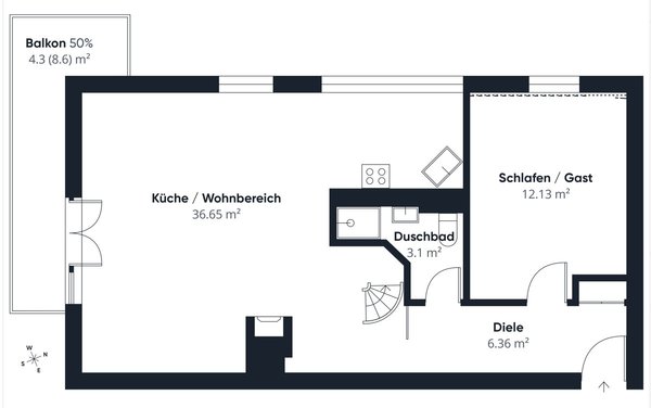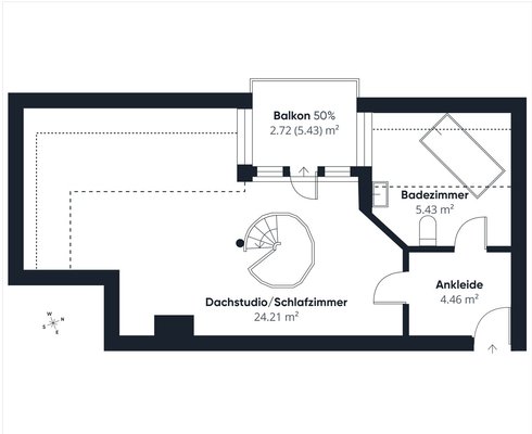 Zugang über Wendeltreppe oder separaten Eingang vom Treppenhaus