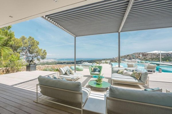 Die modernste Technologie trifft auf außergewöhnliche Architektur! ~~Heliport und Hochwertiger Luxus Exklusive Luxusvilla in Son Vida mit Blick auf Palma und das Mittelmeer mit Helipad ~~Das Hauptgebäude beeindruckt durch seine großzügige Aufteilung auf drei Ebenen. ~~Im Obergeschoss befindet sich eine exklusive Master-Suite mit eigenem Bad, Ankleidezimmer und direktem Zugang zur Terrasse; ergänzt durch drei weitere Schlafzimmer, jedes mit eigenem Bad. ~Im mittleren Stockwerk laden ein elegant dekoriertes Wohnzimmer, ein offener Küchenbereich mit Show-Cooking-Zone, ein elegantes Esszimmer und ein gemütlicher Fernseherraum zum Verweilen ein. ~~Der angrenzende Pool bietet eine Sonnenterrasse, bequeme Balinesische Betten und atemberaubenden Meerblick. ~Der Außenpool verfügt über ein automatisiertes Abdecksystem, um ihn bei Bedarf in einen Helipad zu verwandeln. ~Darüber hinaus gibt es ein Hausautomations- und Sicherheitssystem in der gesamten Villa. ~~Im Keller erwartet Sie ein luxuriöses Spa, das einen Innenpool, Sauna, Fitnessraum und Massagezimmer sowie eine separate Personalwohnung umfasst. ~~Das Gästehaus ist über einen Flur mit dem Hauptgebäude verbunden und bietet zusätzlichen Platz auf zwei Etagen: mit 4 en-suite Schlafzimmern und einer großzügigen Terrassenveranda, ideal für Besucher. ~~Die Garage bietet Platz für bis zu acht Fahrzeuge. ~~- Meerblick ~- Terrassen ~- Hausautomatisierung ~- Soundsystem ~- Designer LED-Beleuchtung ~- Designerküche ~- Garten mit 45 Palmen und tropischen Pflanzen ~- Exklusive Weinkeller ~- In der Nähe von Palma ~- Fußbodenheizung ~- Solarenergie ~- Klimaanlage