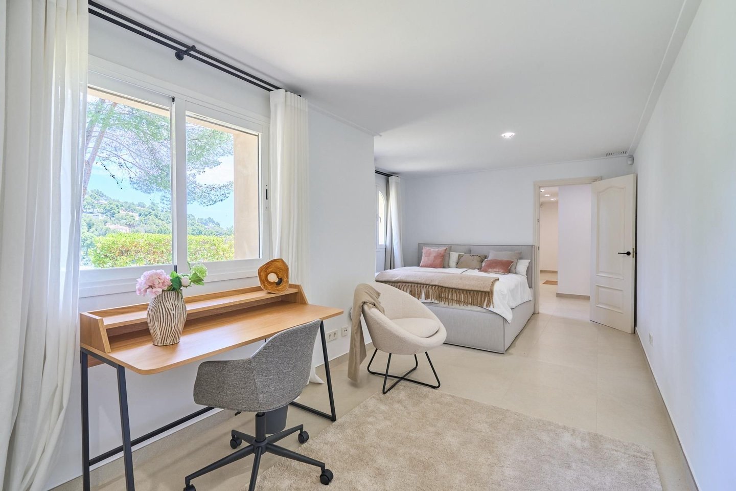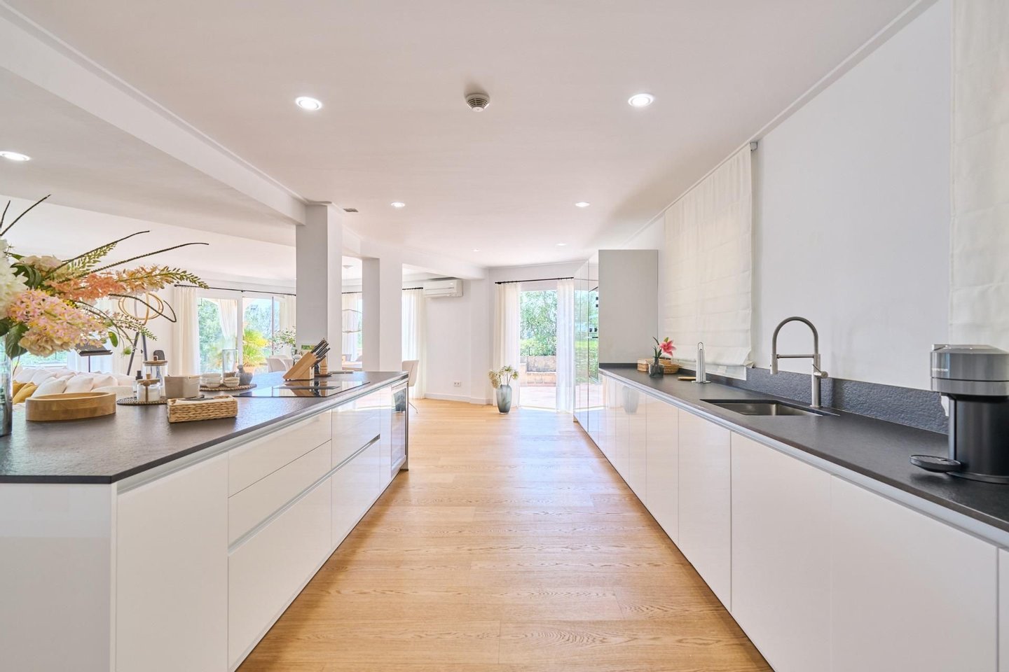 Auf einem großzügigen Grundstück von 2.600 Quadratmetern vor dem renommierten Golfplatz Son Vida gelegen, bietet diese prächtige luxuriöse Villa im mediterranen Stil eine idyllische Umgebung mit wunderschönen Ausblicken auf den Golfplatz und teilweisen Blick auf die Bucht von Palma. Die Immobilie wurde 2020 umfassend renoviert und weist nun hochwertige Oberflächen und ein zeitgemäßes Design auf.