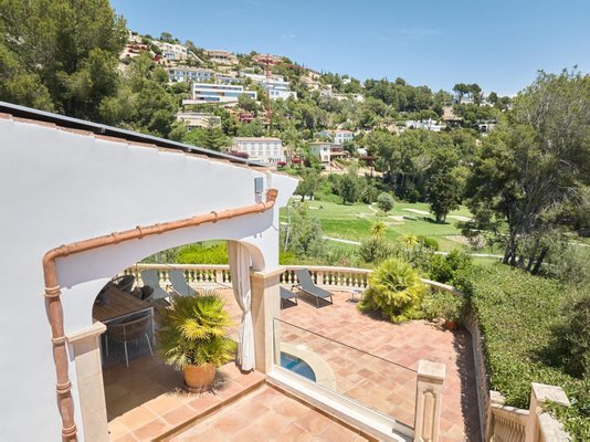 - Ausblick: Direkt zum Golfplatz und mit Blick auf die Bucht von Palma.