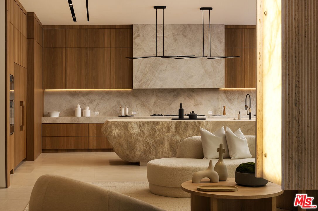 Auf einem der begehrtesten Bergrücken von Bel Air gelegen, bietet Oliveto Vale eine seltene Gelegenheit, ein elegantes, zeitgenössisches Anwesen mit weiten Canyon- und Stadtansichten zu besitzen. Ruhig zwischen friedlichen Olivenbäumen über dem Bel Air Country Club gelegen, verbindet diese architektonische Residenz sauberes, modernes Design mit mühelosem Innen- und Außenleben in seinem sonnenverwöhnten offenen Grundriss. Weitläufige Glaswände rahmen die Baumkronen und die Skyline, während mehrere Terrassen eine ideale Kulisse für Unterhaltung oder ruhige Rückzugsorte schaffen. Das Hauptgeschoss verfügt über großzügige Wohn- und Essbereiche, die von einer eleganten Gourmetküche mit hochwertigen Geräten und einer großen Mittelinsel getragen werden. Die Hauptsuite dient als privater Zufluchtsort mit einem spa-inspirierten Bad, einem begehbaren Kleiderschrank und direktem Zugang zu den Außenbereichen. Zusätzliche Schlafzimmer sind gut dimensioniert und durchdacht für Komfort und Privatsphäre platziert. Die Natur bietet ein ruhiges kalifornisches Leben von seiner besten Seite, mit einem funkelnden Pool, üppiger Landschaft und aussichtsorientierten Lounge-Bereichen. Nur wenige Augenblicke von Westwood, Holmby Hills, Beverly Hills und erstklassigen Schulen entfernt, vereint dieses Wohnhaus in Lower Bel Air Exklusivität, Eleganz und den zeitlosen Lifestyle in Bel-Air. Benannt nach dem grünen Olivenhain, einem Symbol für Frieden, Weisheit und Erneuerung über unzählige Generationen, verspricht Oliveto Vale beständigen Überfluss und ein gut gelebtes Leben. Ein Meisterwerk von Sharon Ohana von CDH Builders mit Architektur und Design von Mike Khalesi von Beverly Hills One.