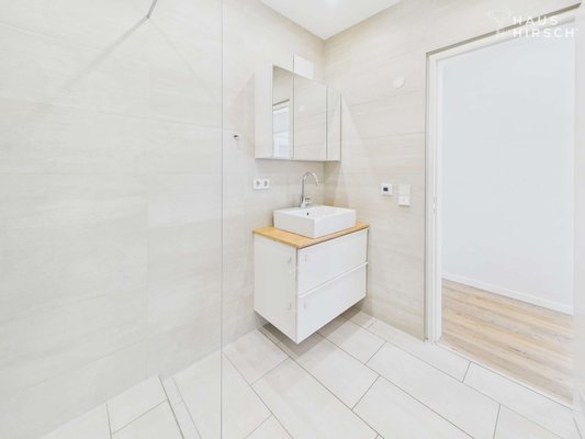 Das hochwertige Bad besticht durch moderne großformatige Fliesen, eine ebenerdige Walk-In-Dusche, elegantes Design und ein Wand-WC. Besonders komfortabel: die elektrische Fußbodenheizung, die an kalten Tagen für eine angenehme Wohlfühltemperatur sorgt.