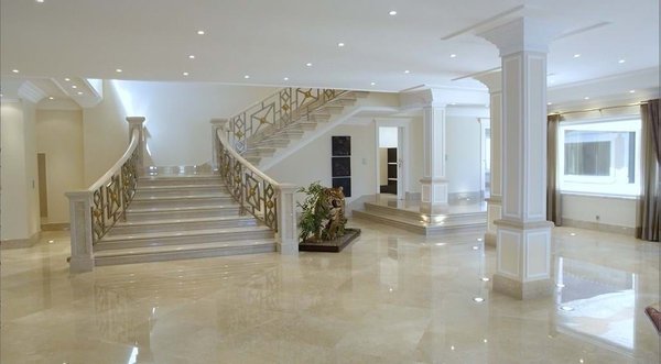 Located in an area of 12,173 square meters, this impressive villa features a large outdoor pool and an indoor pool and Turkish bath. The garage serves for various vehicles, and a cinema and games room for entertainment.