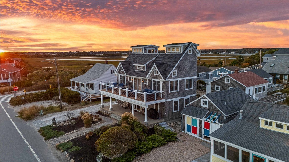 Entlang der Küste in Jerusalem gelegen, wurde dieses maßgefertigte Holzschindel Colonial 2007 von Red House Drafting & Design geschaffen und 2008 von der Grenier Group mit feinster Handwerkskunst zum Leben erweckt. Das dreistöckige Haus, das für ein Leben im Umkreis von Wasser und Licht konzipiert ist, bietet weite 360-Grad-Blicke auf Block Island, Salt Pond und Succotash Marsh mit Sonnenauf- und Sonnenuntergangsblicken – eine Seltenheit! Als Teil der Kenyon Association genießen die Bewohner den Zugang zum Strand, machen morgendliche Spaziergänge, Muschelsammeln oder eine Kajakrampe zum Alltag. Das Leben im Freien ist hier mühelos: Kaffee auf der überdachten Veranda trinken, sich auf der ganzkörperlichen Composite-Terrasse mit Soundanlage treffen oder auf den Balkon im dritten Stock gehen, wo eine Bar und ein Arbeitszimmer im Freien den perfekten Gästerückzugsort und den besten Ort der Stadt bieten, um am 4. Juli Feuerwerk in alle Richtungen zu sehen. Im Inneren bietet das Erdgeschoss zwei Schlafzimmer, ein komplettes Bad und eine Waschküche. Der zweite Stock ist das Herz des Hauses, eine offene Küche und ein Wohnzimmer mit einem weiteren vollen Bad und einfachem Zugang zur Terrasse. Im Obergeschoss bietet das dritte Stockwerk die großartigsten Ausblicke des Hauses, ein wahrer Showstopper. Durchdachte Upgrades machen das Leben einfach: eine Landschaftsrenovierung 2020, orkanzertifizierte Andersen-Fenster, Advantex bodenloses Filtersystem und ein Generator für das ganze Haus mit direktem Anschluss. Parkplätze für vier Autos erhöhen die Bequemlichkeit. Eine seltene Gelegenheit, dieses Küstenrefugium zu Ihrem ganzjährigen Zuhause oder Sommerurlaub zu machen – in einer der wertvollsten Küstengemeinden Rhode Islands.