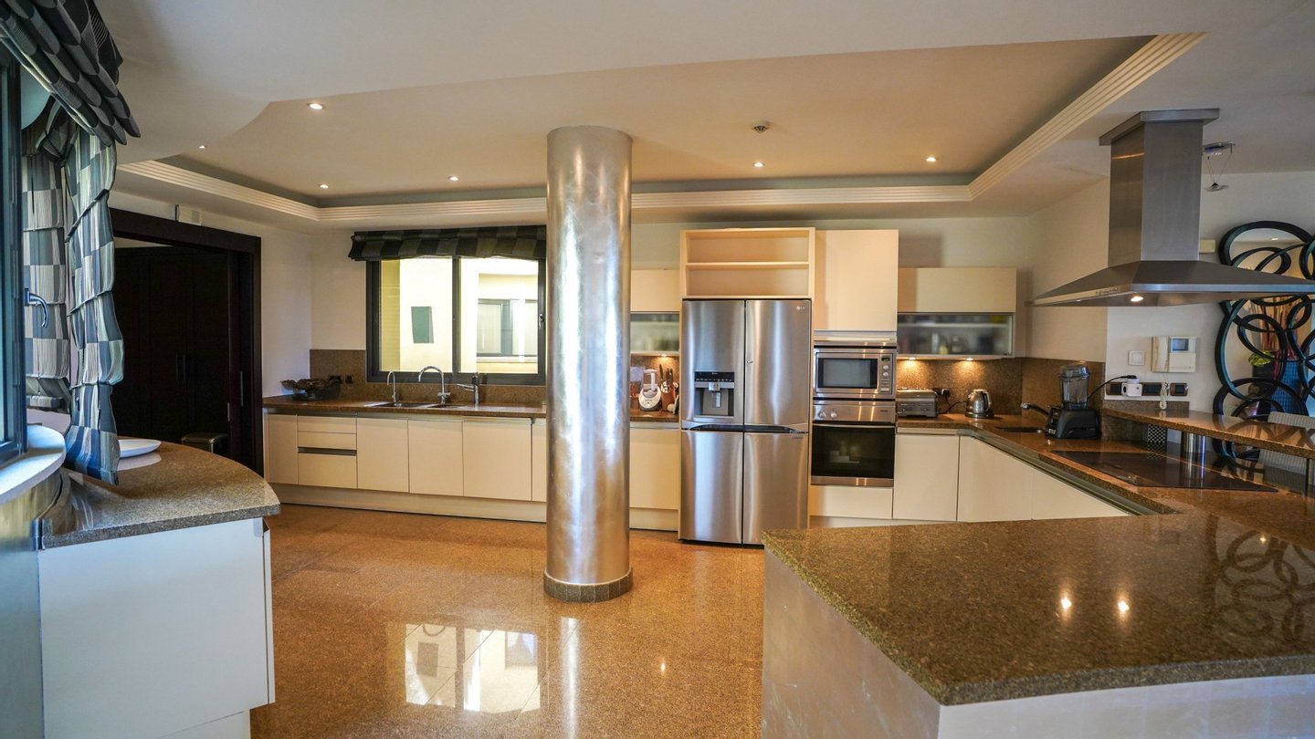 Das Apartment umfasst drei großzügige Schlafzimmer und fünf luxuriöse Badezimmer, die alle mit Bedacht auf Privatsphäre und Komfort entworfen wurden. Innen überzeugt die Wohnung mit Klimaanlage, Einbauschränken sowie eleganten Wohn- und Essbereichen, die nahtlos auf die private Terrasse übergehen. Ob Sie Gäste empfangen oder Ruhe genießen möchten – der großzügige Innen- und Außenbereich ist dafür perfekt ausgelegt. Eine private Garage bietet Sicherheit und Komfort, und ein Aufzug sorgt für müheloses Wohnen.
