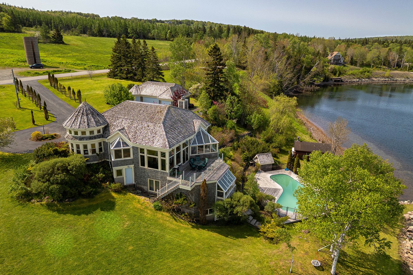 Hurrikan-zertifizierte Solariumfenster verbinden Sie das ganze Jahr über mit der Außenwelt, und das eingelassene Salzwasserbecken mit seiner privaten Umgebung vervollständigt das resortähnliche Erlebnis. Eine separate Blockhütte dient als gemütliches Gästehaus, perfekt für Besucher. Das gesamte Grundstück genießt ein geschütztes Mikroklima, das durch die umliegenden Berge geschaffen wird und vier markante und schöne Jahreszeiten bietet. Dieses Anwesen ist ein seltenes und elegantes Küstenparadies in einem der begehrtesten Orte Nova Scotias. Segeln, golfen, keltische Musik und den Lebensstil an der Ostküste in Luxus genießen.