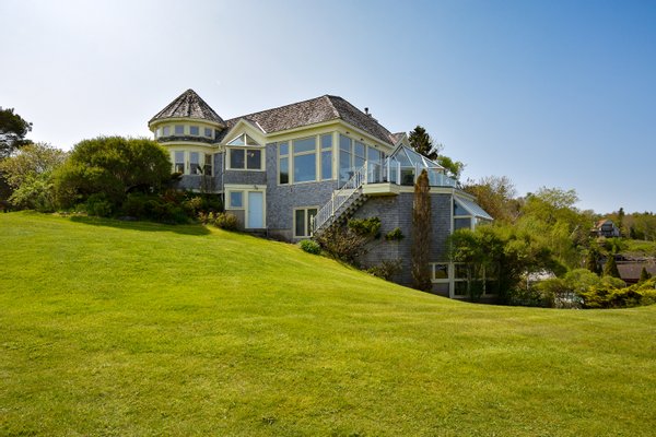 Dieses 2,33 Hektar große Anwesen bietet fast 150 Meter unberührtes Ufer und einen privaten Steg, perfekt zum Festmachen Ihres Segelboots nur wenige Schritte von zu Hause entfernt. Das Grundstück hat einen auffälligen Straßeneindruck mit einer runden, gepflasterten Einfahrt, einem Turm mit Buntglas, gepflegten Gärten und einer freistehenden Drei-Auto-Garage. Was von der Straße aus nicht sichtbar ist, ist das architektonische Juwel, das den Hang hinabstürzt – drei verglaste Ebenen bieten spektakuläre Seeblicke von jeder Etage, gestaltet, um sich in die Landschaft einzufügen und das Bild eines Glasschiffs auf See zu vermitteln.