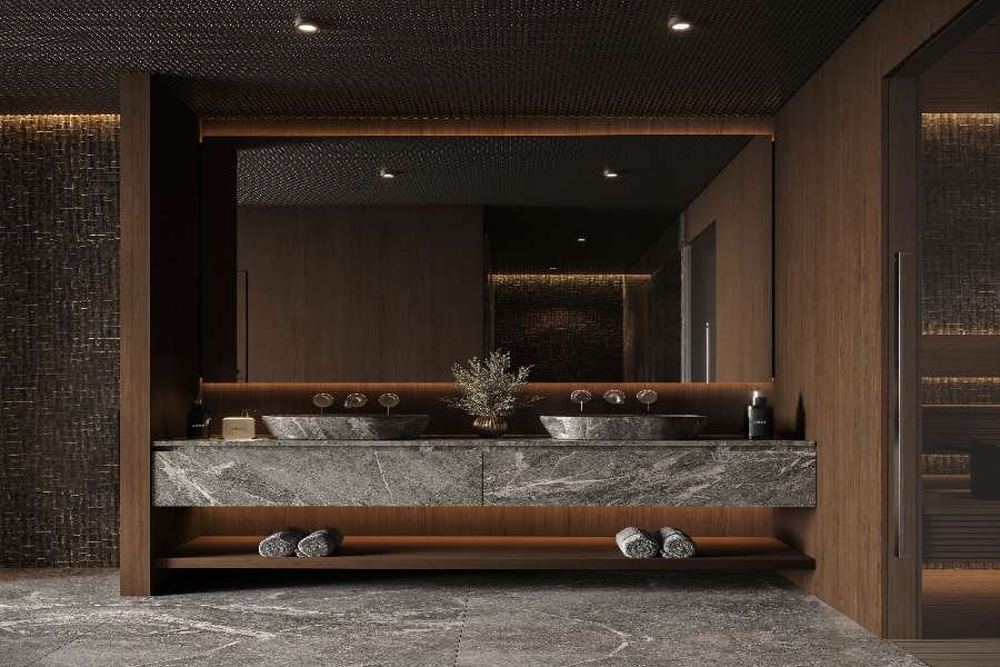 Wenn Sie dieses luxuriöse Studioapartment betreten, werden Sie von einem umfangreichen Angebot an Annehmlichkeiten und Einrichtungen begrüßt, die auf Ihre Wellness-, Geschäfts- und Freizeitbedürfnisse zugeschnitten sind. Beginnen Sie Ihren Tag mit