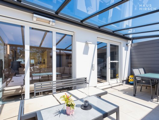 Outdoor-Wohnbereich: Wintergarten, Grillterrasse mit Glasdach & Heizstrahler