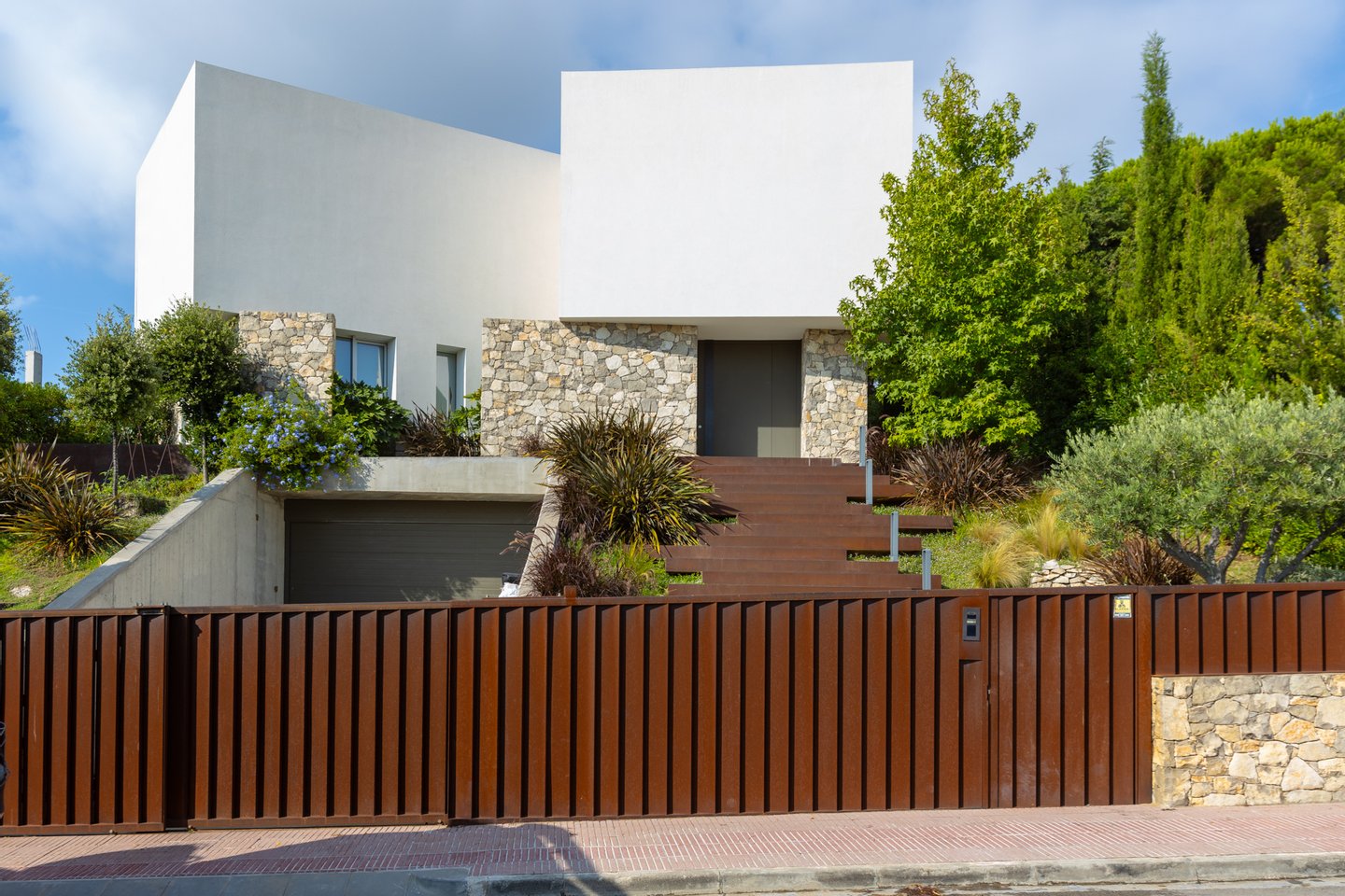 Diese Immobilie, mit zeitgemäßem Design und hoher Energieeffizienz, bietet mehr als 400 m² auf einem Grundstück von 800 m². Seine elegante Fassade verbindet Weiß mit Naturstein und wird mit einem prächtigen beheizten Schwimmbecken vervollständigt,