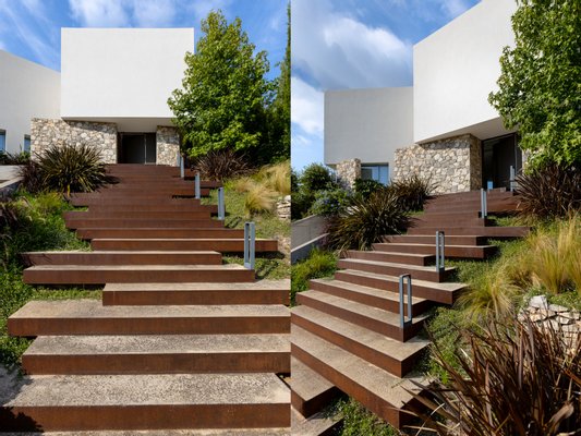 Als Mehrwert verfügt es über einen Regenwassertank, der Wasser für die Zisternen in den Badezimmern, die Bewässerung des Gartens und das Schwimmbecken wiederverwendet.