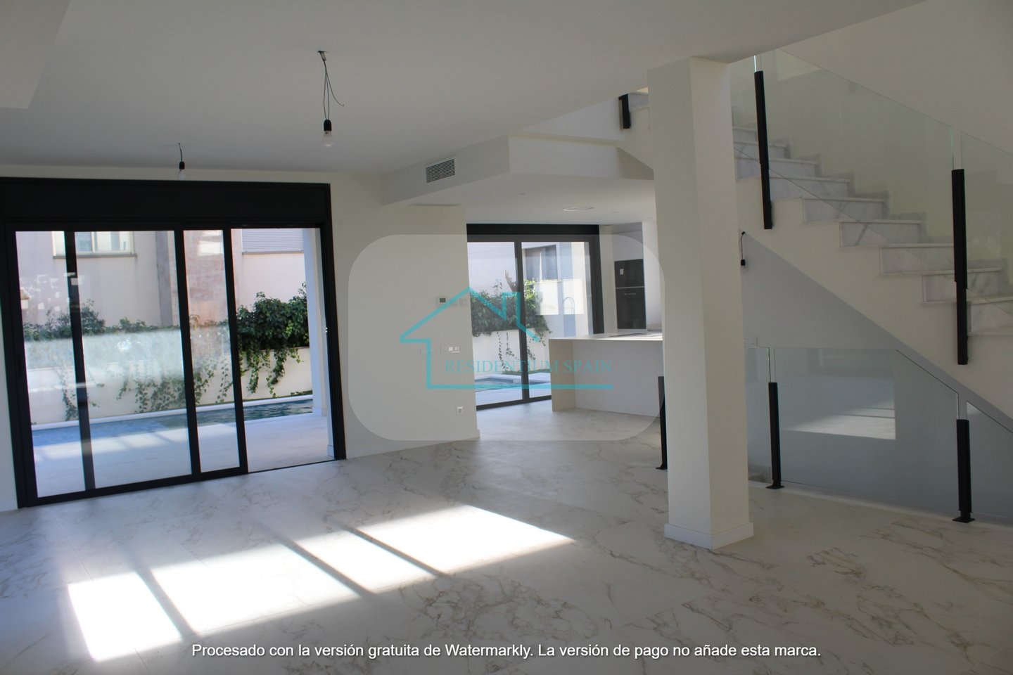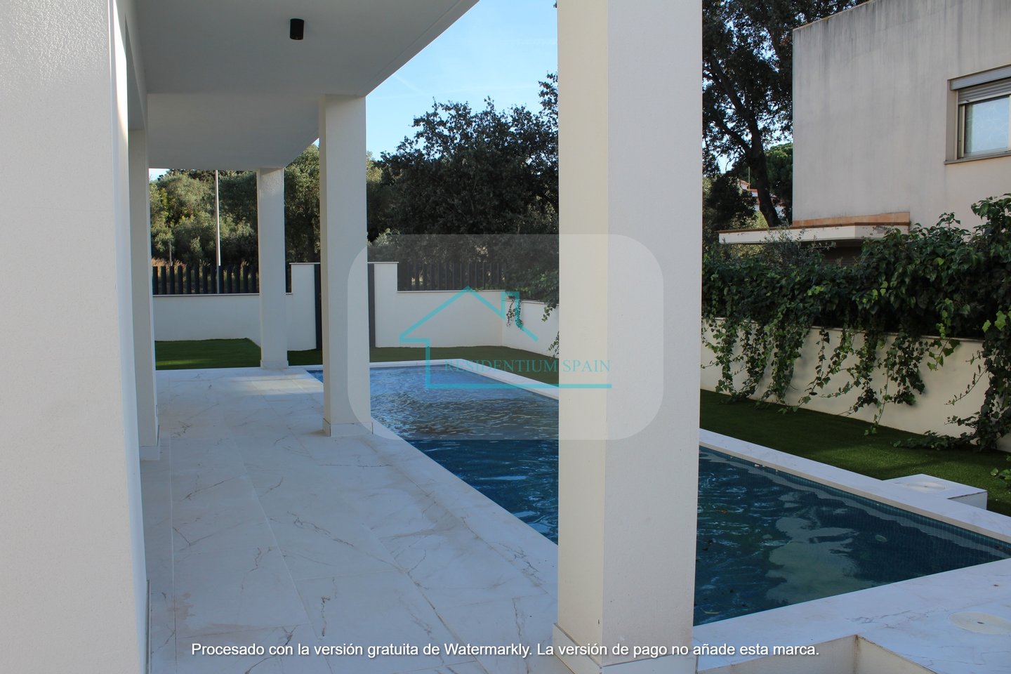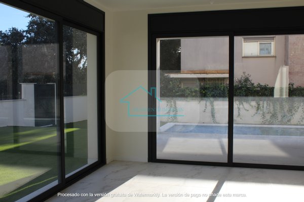 Im Erdgeschoss mit 121 m² gibt es ein Doppelgästezimmer und ein Badezimmer, ein geräumiges Wohnzimmer mit Esszimmer mit einer voll ausgestatteten amerikanischen Küche mit hochwertigen Geräten und einer zentralen Insel mit direktem Zugang zum Garten mit Pool und beeindruckender Veranda (nach Süden ausgerichtet), Waschraum und Platz für Speisekammer.