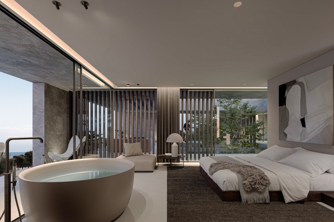 Schlafzimmer: 5 Schlafzimmer, darunter eine Master-Suite mit ovaler Badewanne mit Blick aufs Meer, privates Badezimmer und großes Ankleidezimmer.