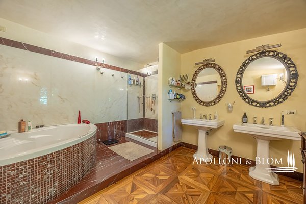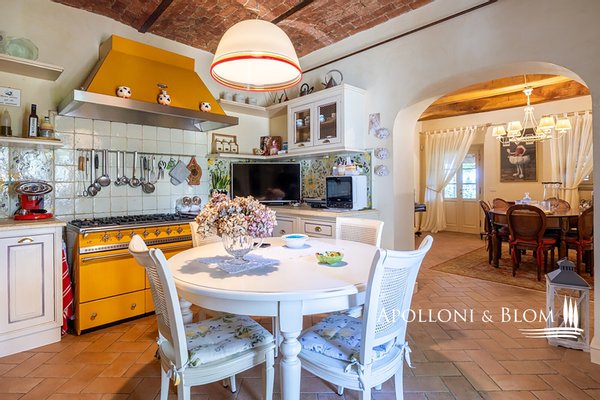 Mit herrlichem Panoramablick, fein restauriert, voll möbliert und mit der Möglichkeit eines Swimmingpools, in Sofignano zu verkaufen. Auf den sanften Hügeln nördlich von Florenz, nur wenige Minuten vom Dorf Vaiano entfernt, dominiert die Landschaft von Sofignano einen bezaubernden Panoramablick. In dieser typisch toskanischen Umgebung, umgeben von einem üppigen Garten mit jahrhundertealten Bäumen, bieten wir ein charakteristisches Bauernhaus aus Stein von 400 Quadratmetern an, das unter Beibehaltung der ursprünglichen Elemente sorgfältig restauriert und in eine exklusive Residenz mit modernem Komfort, fünf Zimmern und einer freistehenden ehemaligen Scheune von etwa 80 Quadratmetern umgewandelt wurde. Das Erdgeschoss beherbergt eine Eingangshalle mit Torbogen und hellem Wohnzimmer, ein Esszimmer mit maßgefertigten Möbeln und Zugang zur Veranda, eine komplette Küche, einen großen Raum für Wäsche und Garderobe sowie ein Badezimmer mit Toilette. Die Böden sind vollständig mit handgefertigtem Terrakotta belegt, während die Decken von typischen Ziegelgewölben bis hin zu freiliegenden Holzbalken variieren. Die Veranda öffnet sich direkt zum Garten hin und umschließt zwei Seiten des Gebäudes. Sie ist ideal zum Wohnen und Essen im Freien und verfügt sogar über einen Holzofen aus Stein und Ziegeln. Alle Fensterrahmen sind aus Massivholz, doppelt verglast und die Außentüren. Im ersten Stock sind alle Böden mit elegantem Parkett ausgelegt. Hier befindet sich der Schlafbereich mit einem Hauptschlafzimmer mit eigenem Bad, das mit einer Whirlpool-Badewanne und einem Doppelwaschbecken ausgestattet ist, einem zweiten Schlafzimmer mit eigenem Bad (mit Fenster), zwei weiteren Schlafzimmern, einem Bad und einem geräumigen Garderobenraum mit schmiedeeiserner Treppe, die zum Dachgeschoss führt, wo sich ein fünftes Schlafzimmer, ein Bad und Abstellräume befinden. Das Nebengebäude im Garten mit Steinfassaden ist der Geselligkeit und den Gästen gewidmet und verfügt über eine charakteristische Taverne mit einem großen Kamin, hohen Holzbalkendecken und einem bezaubernden zentralen Dachstuhl, eine Küche mit zentraler Insel und Zugang von außen sowie einen darunter liegenden Weinkeller. Die hohen Bäume im Garten spenden in den Sommermonaten Schatten, der steinerne Brunnen unterstützt die Bewässerungsanlage und ein offener Bereich bietet Platz für einen Swimmingpool. Ein Landhaus für das ganze Jahr oder für den Urlaub, das man mit Familie und Freunden genießen kann, in einer einzigartigen natürlichen Umgebung, aber mit den wichtigsten Attraktionen in der Nähe, vom Barberino Outlet und den Einkaufszentren von Prato, die in 20 Minuten erreichbar sind, bis zum historischen Zentrum von Florenz, das nur 35 km entfernt ist, und den Geschäften und Dienstleistungen im Dorf Vaiano in 4 km Entfernung.