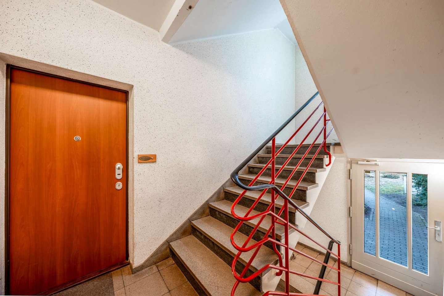 In einem aufgelockerten Wohnumfeld entstanden hier im Jahr 1956 mehrere Häuser, eingebettet in weitläufige Grünflächen, die eine angenehme Atmosphäre schaffen und den Standort für unterschiedliche Lebenssituationen, besonders aber für Familien, attraktiv machen. Die angebotene Wohnung befindet sich im Hochparterre eines ruhig gelegenen Gebäudes in zweiter Reihe. Abseits des Straßenlärms genießt man hier eine erholsame Wohnlage mit Blick ins Grüne. Die Wohnung ist sofort bezugsfrei.