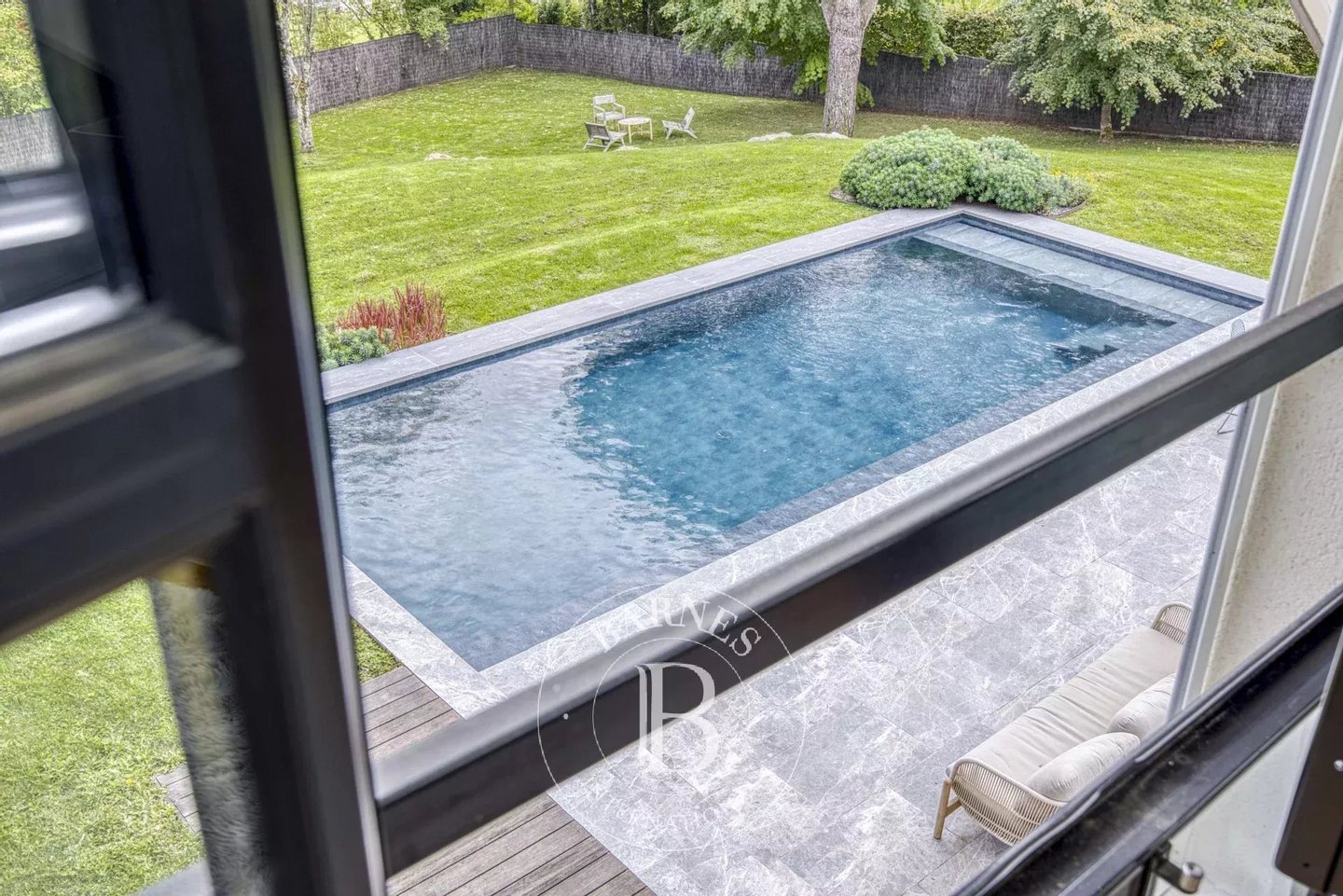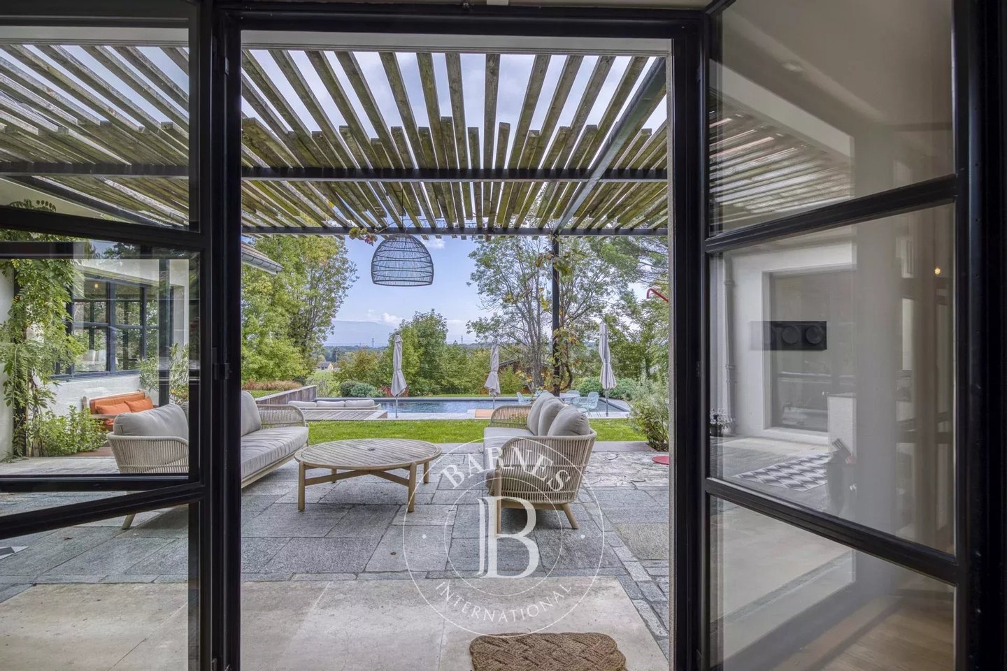 The entire property enjoys unobstructed views of the Alps and Mont-Blanc, offering a truly breathtaking daily panorama.