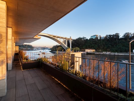 Eleganz, Raffinesse und eine einzigartige Beziehung zur Landschaft prägen dieses außergewöhnliche Dreizimmerapartment in der ersten Reihe des Douro, direkt neben der Arrábida-Brücke.