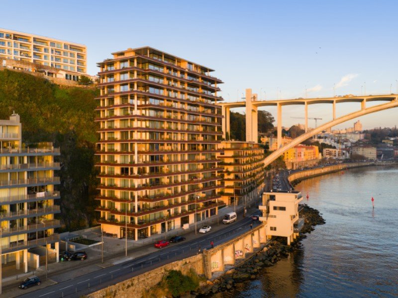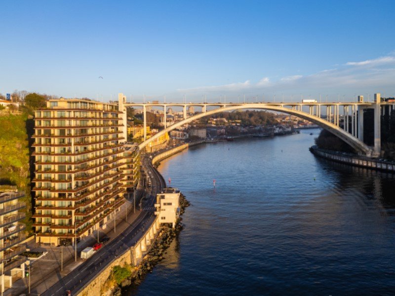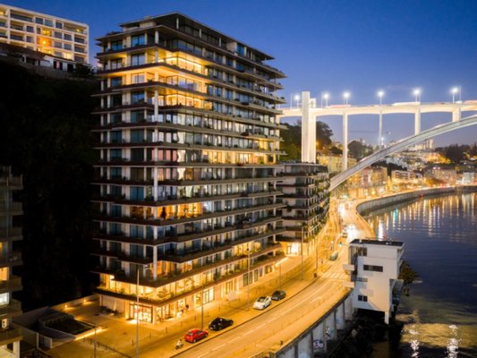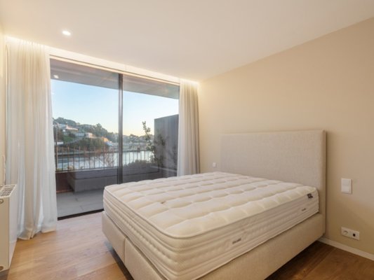 Eleganz, Raffinesse und eine einzigartige Beziehung zur Landschaft prägen dieses außergewöhnliche Dreizimmerapartment in der ersten Reihe des Douro, direkt neben der Arrábida-Brücke.